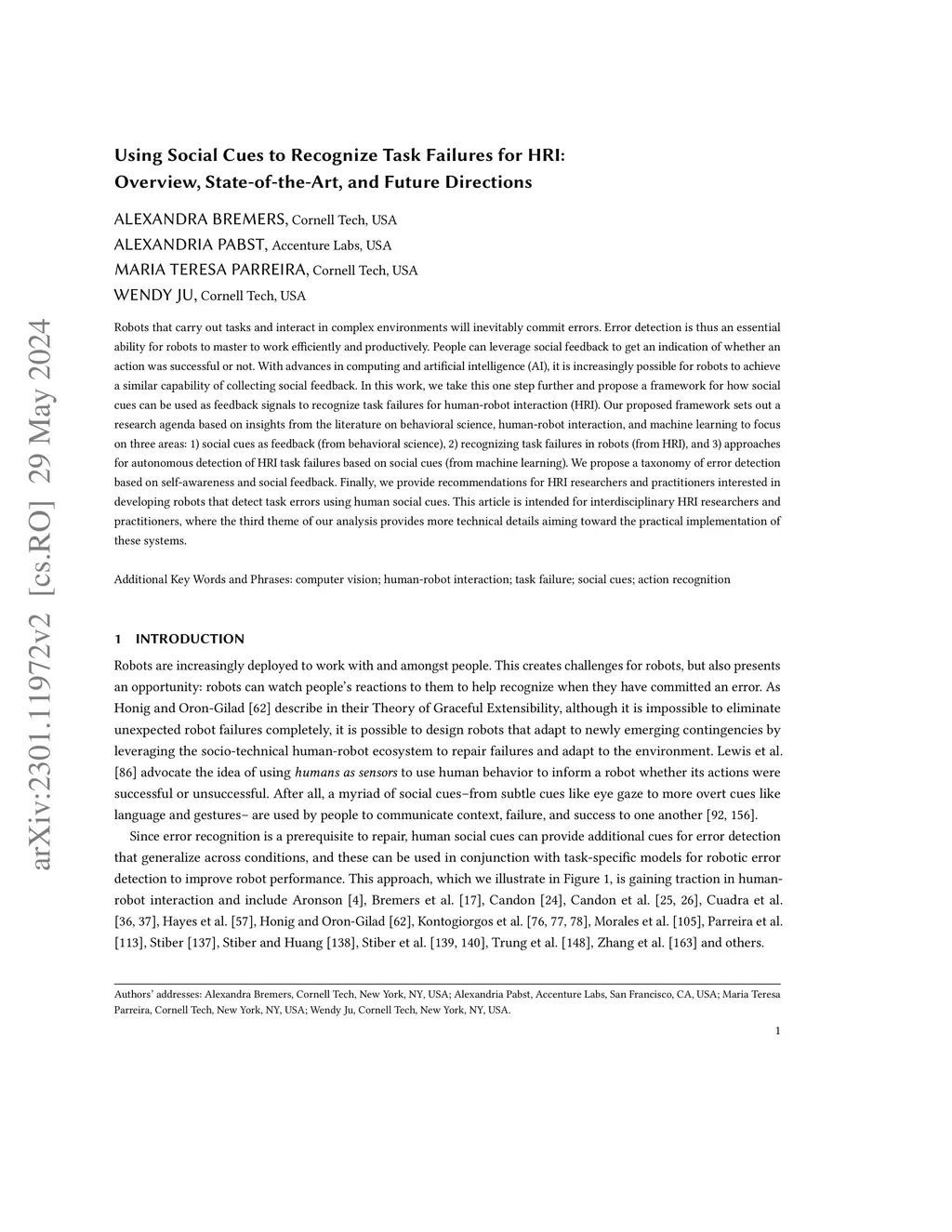 Using Social Cues to Recognize Task Failures for HRI: Overview,