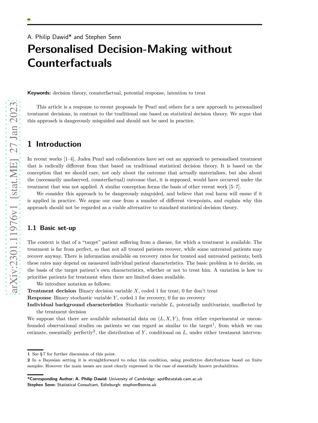 This article is a response to recent proposals by Pearl and others for a new approach to personalised treatment decisions, in contrast to the traditional one based on statistical decision theory. We argue that this approach is dangerously misguided and should not be used in practice.