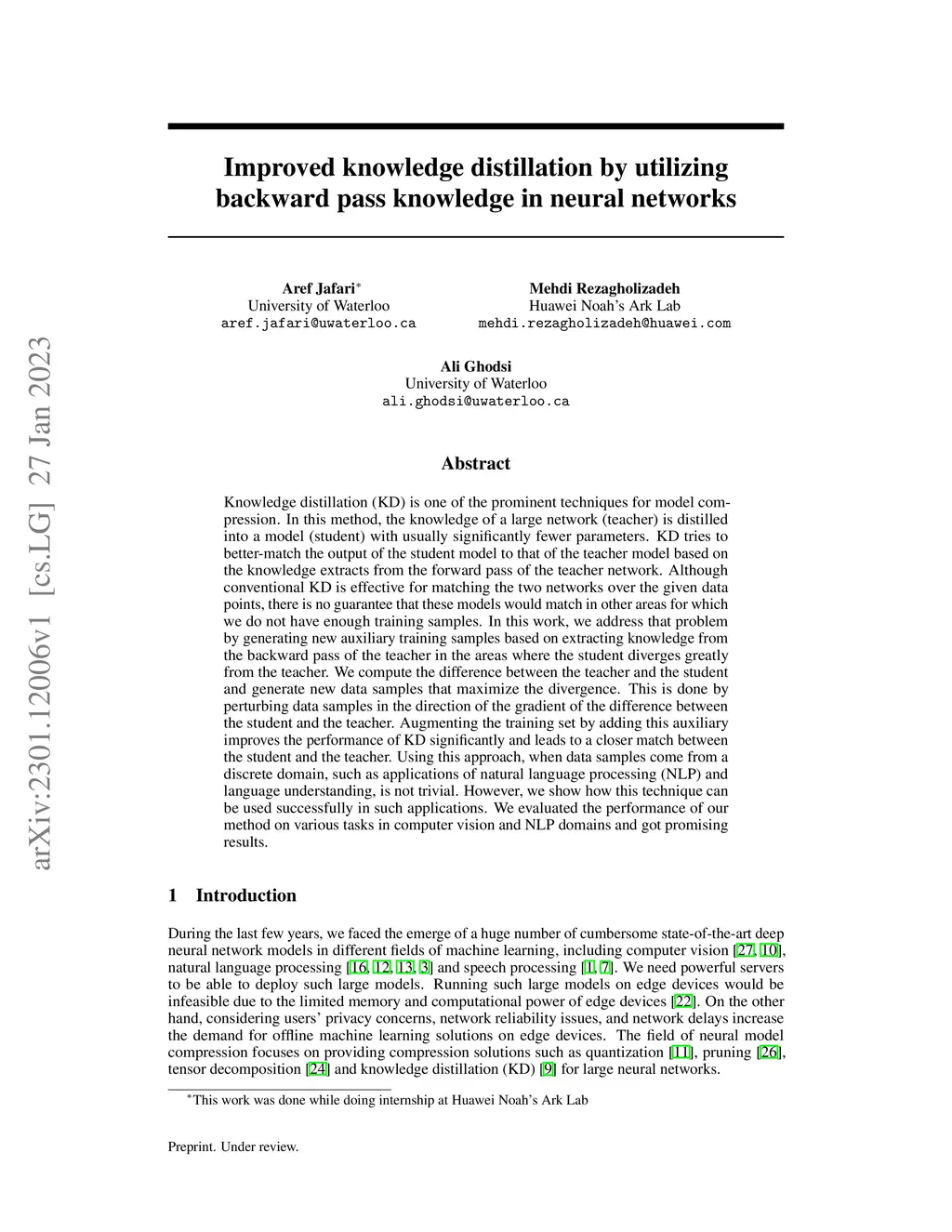 Improved knowledge distillation by utilizing backward pass knowledge in