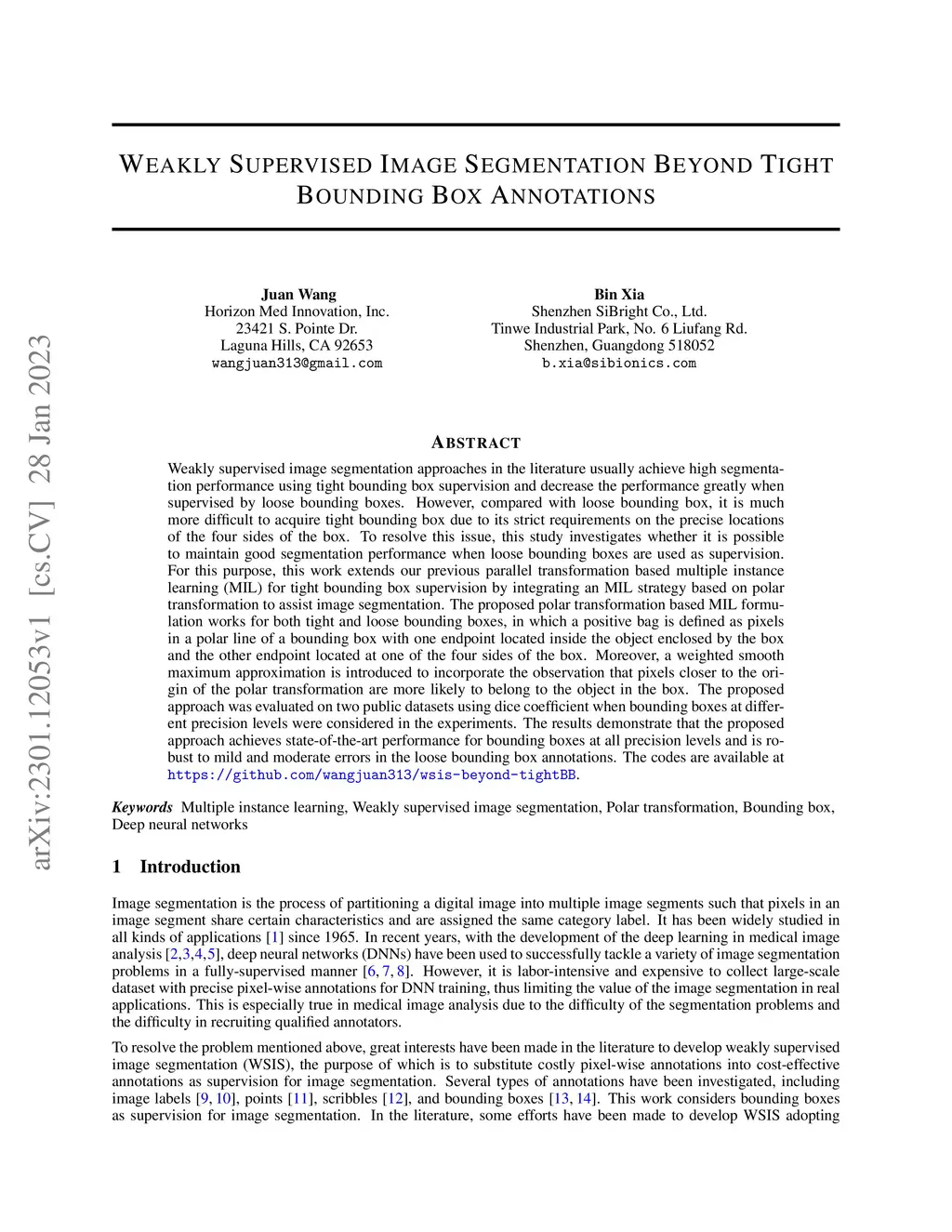 Weakly supervised image segmentation approaches in the literature usually achieve high segmentation performance using tight bounding box supervision and decrease the performance greatly when supervised by loose bounding boxes. However, compared with loose bounding box, it is much more difficult to acquire tight bounding box due to its strict requirements on the precise locations of the four sides of the box. To resolve this issue, this study investigates whether it is possible to maintain good segmentation performance when loose bounding boxes are used as supervision. For this purpose, this work extends our previous parallel transformation based multiple instance learning (MIL) for tight bounding box supervision by integrating an MIL strategy based on polar transformation to assist image segmentation. The proposed polar transformation based MIL formulation works for both tight and loose bounding boxes, in which a positive bag is defined as pixels in a polar line of a bounding box with one endpoint located inside the object enclosed by the box and the other endpoint located at one of the four sides of the box. Moreover, a weighted smooth maximum approximation is introduced to incorporate the observation that pixels closer to the origin of the polar transformation are more likely to belong to the object in the box. The proposed approach was evaluated on two public datasets using dice coefficient when bounding boxes at different precision levels were considered in the experiments. The results demonstrate that the proposed approach achieves state-of-the-art performance for bounding boxes at all precision levels and is robust to mild and moderate errors in the loose bounding box annotations. The codes are available at \url{https://github.com/wangjuan313/wsis-beyond-tightBB}.