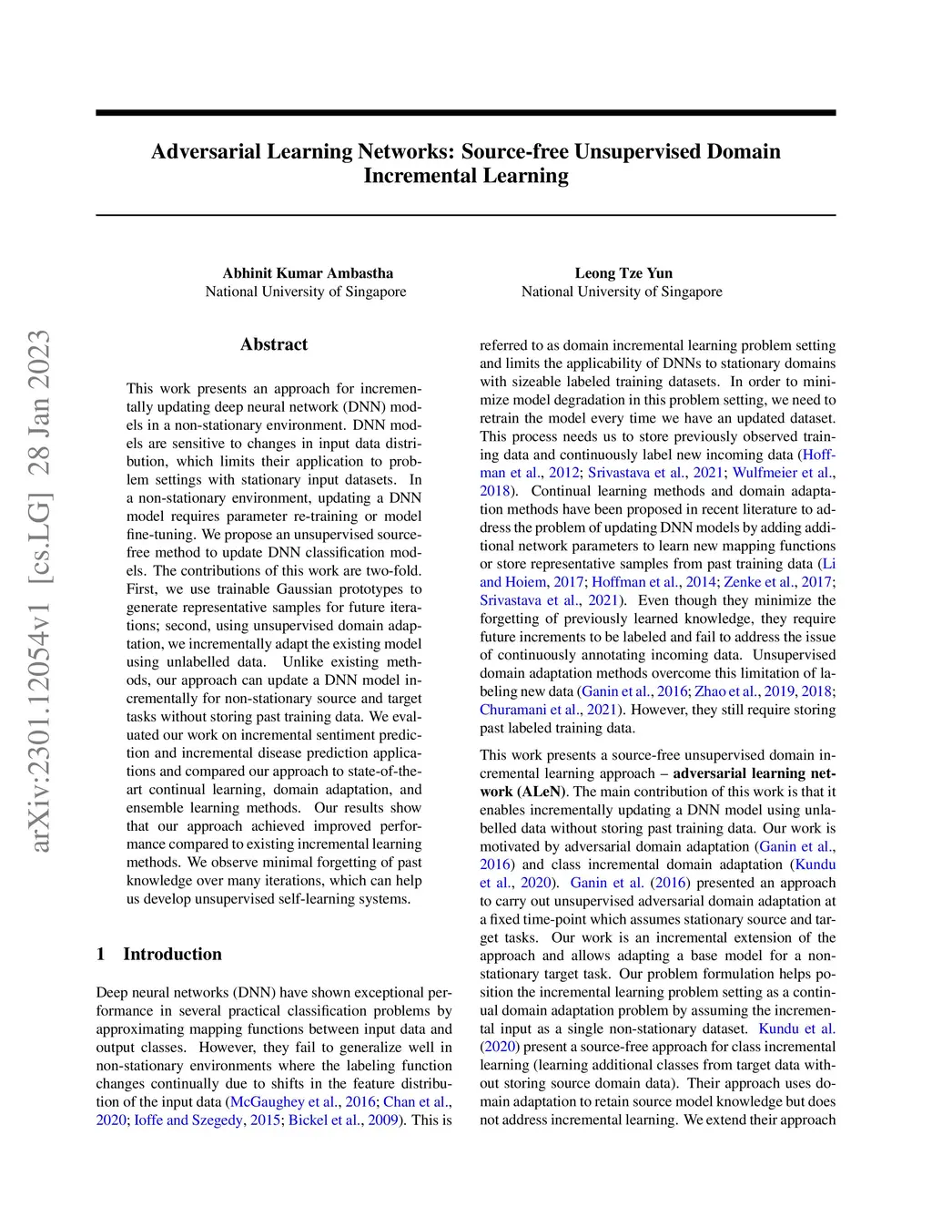 This work presents an approach for incrementally updating deep neural network (DNN) models in a non-stationary environment. DNN models are sensitive to changes in input data distribution, which limits their application to problem settings with stationary input datasets. In a non-stationary environment, updating a DNN model requires parameter re-training or model fine-tuning. We propose an unsupervised source-free method to update DNN classification models. The contributions of this work are two-fold. First, we use trainable Gaussian prototypes to generate representative samples for future iterations; second, using unsupervised domain adaptation, we incrementally adapt the existing model using unlabelled data. Unlike existing methods, our approach can update a DNN model incrementally for non-stationary source and target tasks without storing past training data. We evaluated our work on incremental sentiment prediction and incremental disease prediction applications and compared our approach to state-of-the-art continual learning, domain adaptation, and ensemble learning methods. Our results show that our approach achieved improved performance compared to existing incremental learning methods. We observe minimal forgetting of past knowledge over many iterations, which can help us develop unsupervised self-learning systems.
