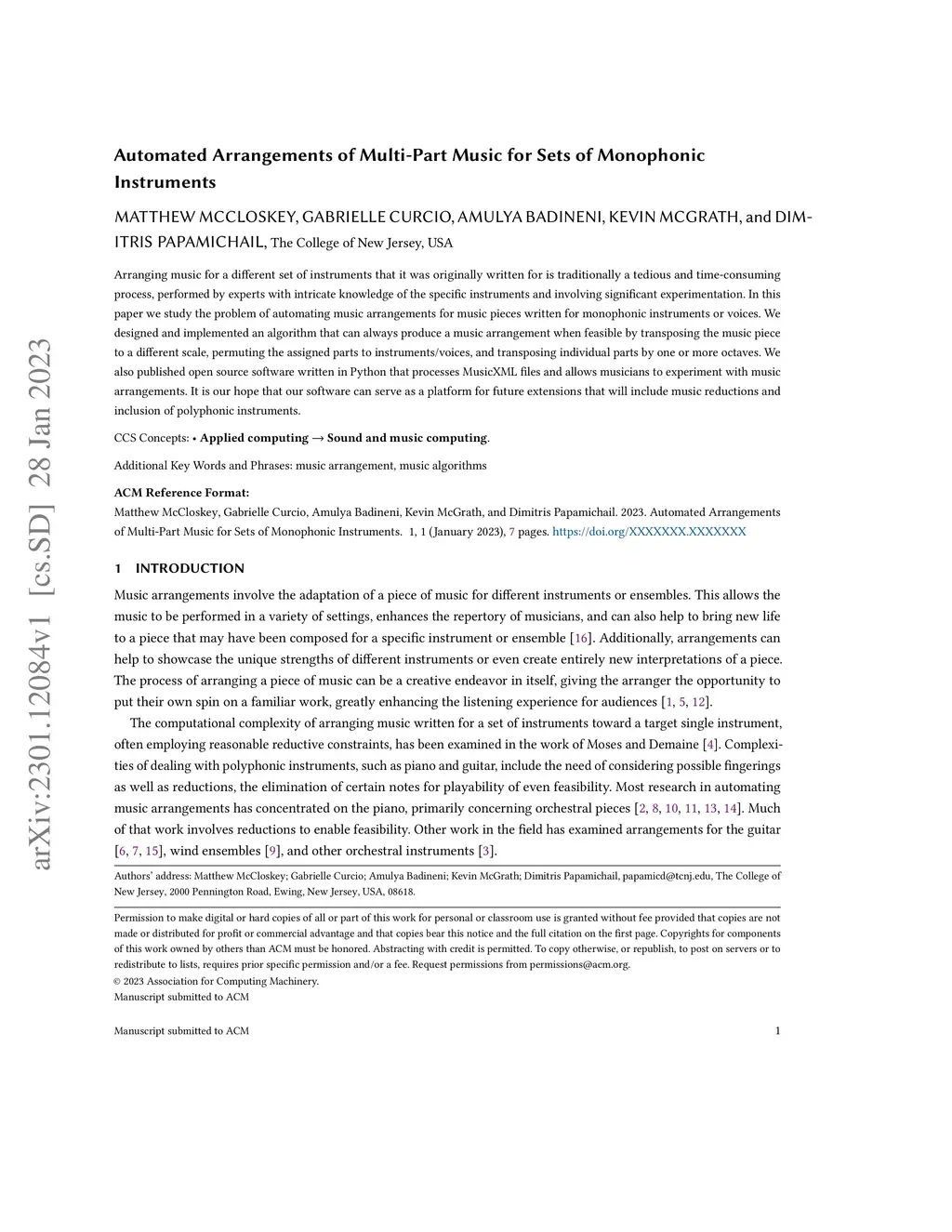 Automated Arrangements of Multi-Part Music for Sets of Monophonic