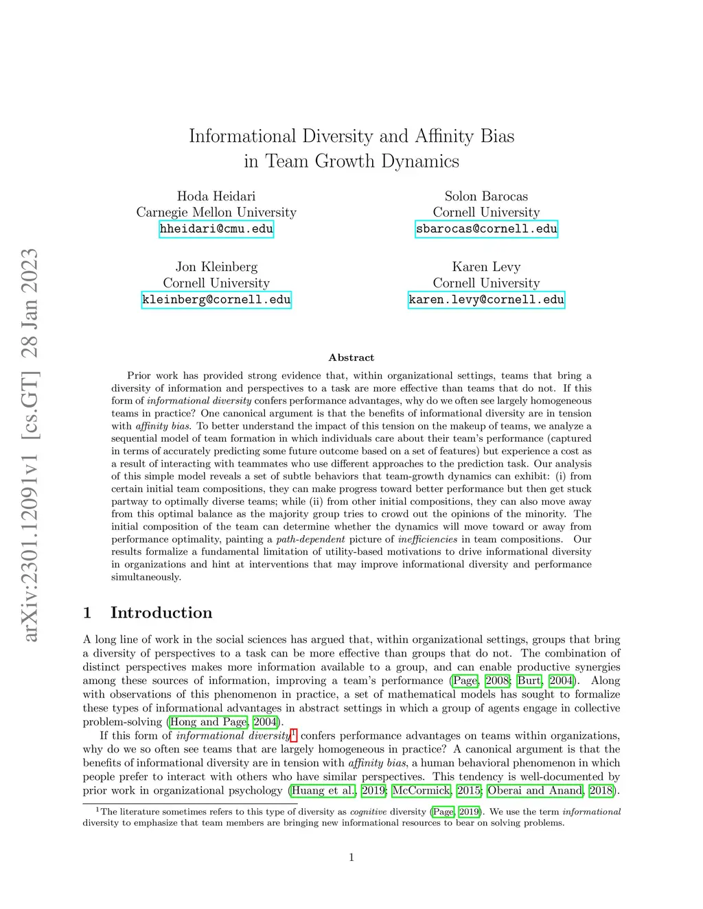 Informational Diversity and Affinity Bias in Team Growth Dynamics