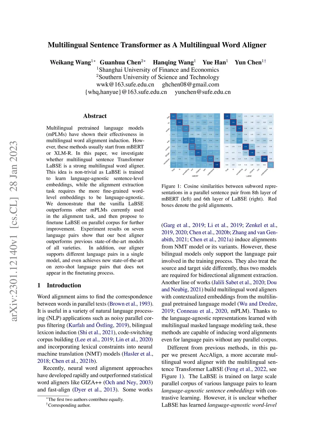 Multilingual pretrained language models (mPLMs) have shown their effectiveness in multilingual word alignment induction. However, these methods usually start from mBERT or XLM-R. In this paper, we investigate whether multilingual sentence Transformer LaBSE is a strong multilingual word aligner. This idea is non-trivial as LaBSE is trained to learn language-agnostic sentence-level embeddings, while the alignment extraction task requires the more fine-grained word-level embeddings to be language-agnostic. We demonstrate that the vanilla LaBSE outperforms other mPLMs currently used in the alignment task, and then propose to finetune LaBSE on parallel corpus for further improvement. Experiment results on seven language pairs show that our best aligner outperforms previous state-of-the-art models of all varieties. In addition, our aligner supports different language pairs in a single model, and even achieves new state-of-the-art on zero-shot language pairs that does not appear in the finetuning process.
