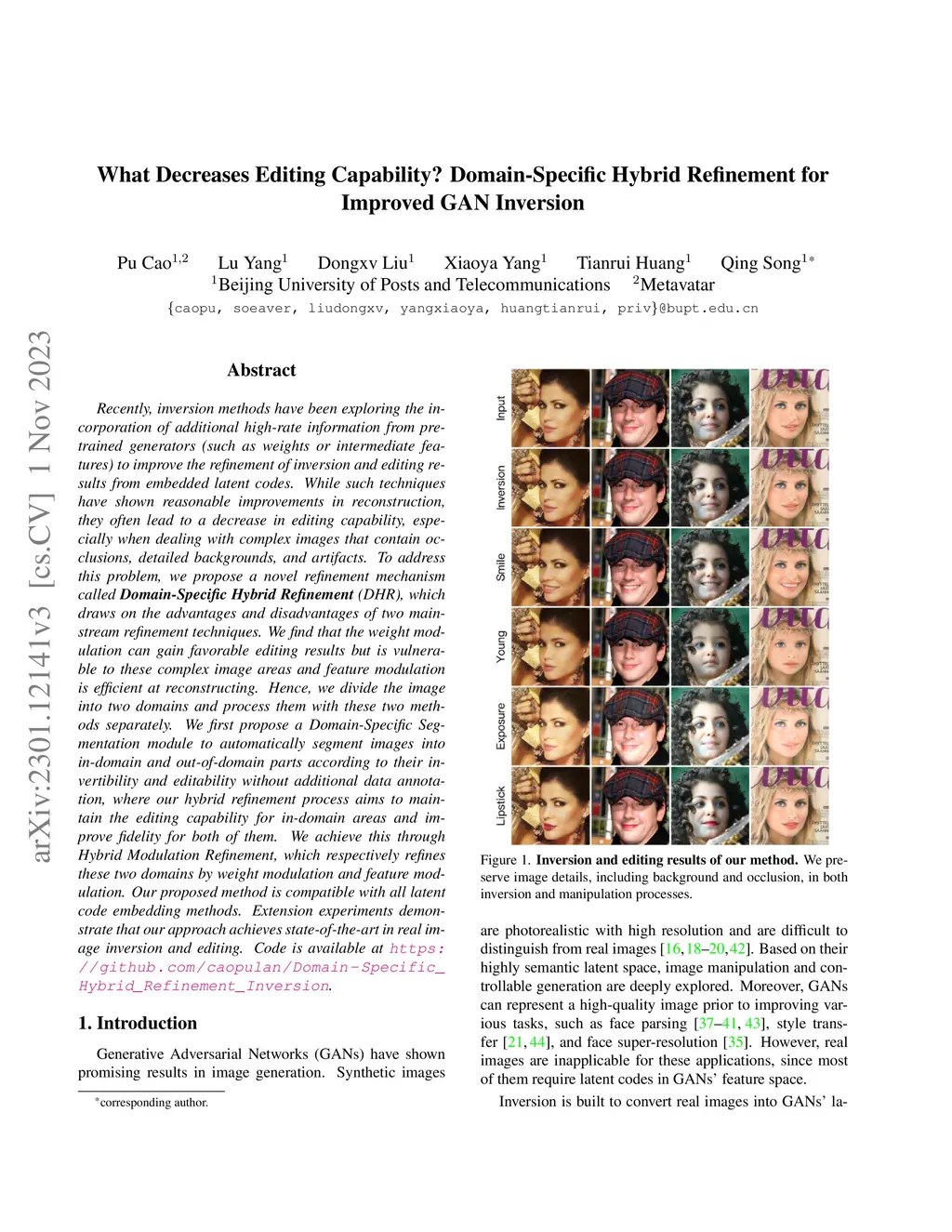 Recently, inversion methods have focused on additional high-rate information in the generator (e.g., weights or intermediate features) to refine inversion and editing results from embedded latent codes. Although these techniques gain reasonable improvement in reconstruction, they decrease editing capability, especially on complex images (e.g., containing occlusions, detailed backgrounds, and artifacts). A vital crux is refining inversion results, avoiding editing capability degradation. To tackle this problem, we introduce Domain-Specific Hybrid Refinement (DHR), which draws on the advantages and disadvantages of two mainstream refinement techniques to maintain editing ability with fidelity improvement. Specifically, we first propose Domain-Specific Segmentation to segment images into two parts: in-domain and out-of-domain parts. The refinement process aims to maintain the editability for in-domain areas and improve two domains' fidelity. We refine these two parts by weight modulation and feature modulation, which we call Hybrid Modulation Refinement. Our proposed method is compatible with all latent code embedding methods. Extension experiments demonstrate that our approach achieves state-of-the-art in real image inversion and editing. Code is available at https://github.com/caopulan/Domain-Specific_Hybrid_Refinement_Inversion.