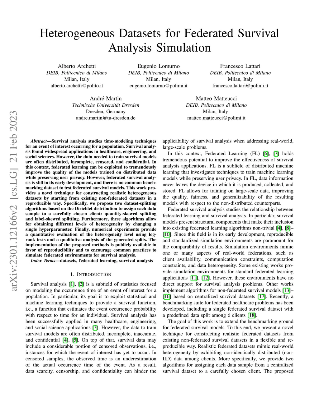 Heterogeneous Datasets for Federated Survival Analysis Simulation