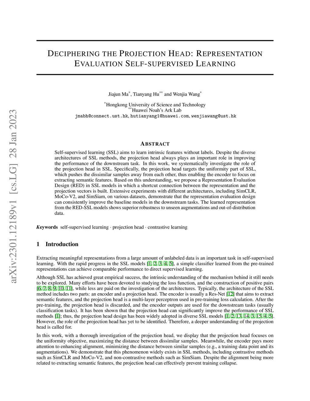 Self-supervised learning (SSL) aims to learn intrinsic features without labels. Despite the diverse architectures of SSL methods, the projection head always plays an important role in improving the performance of the downstream task. In this work, we systematically investigate the role of the projection head in SSL. Specifically, the projection head targets the uniformity part of SSL, which pushes the dissimilar samples away from each other, thus enabling the encoder to focus on extracting semantic features. Based on this understanding, we propose a Representation Evaluation Design (RED) in SSL models in which a shortcut connection between the representation and the projection vectors is built. Extensive experiments with different architectures, including SimCLR, MoCo-V2, and SimSiam, on various datasets, demonstrate that the representation evaluation design can consistently improve the baseline models in the downstream tasks. The learned representation from the RED-SSL models shows superior robustness to unseen augmentations and out-of-distribution data.