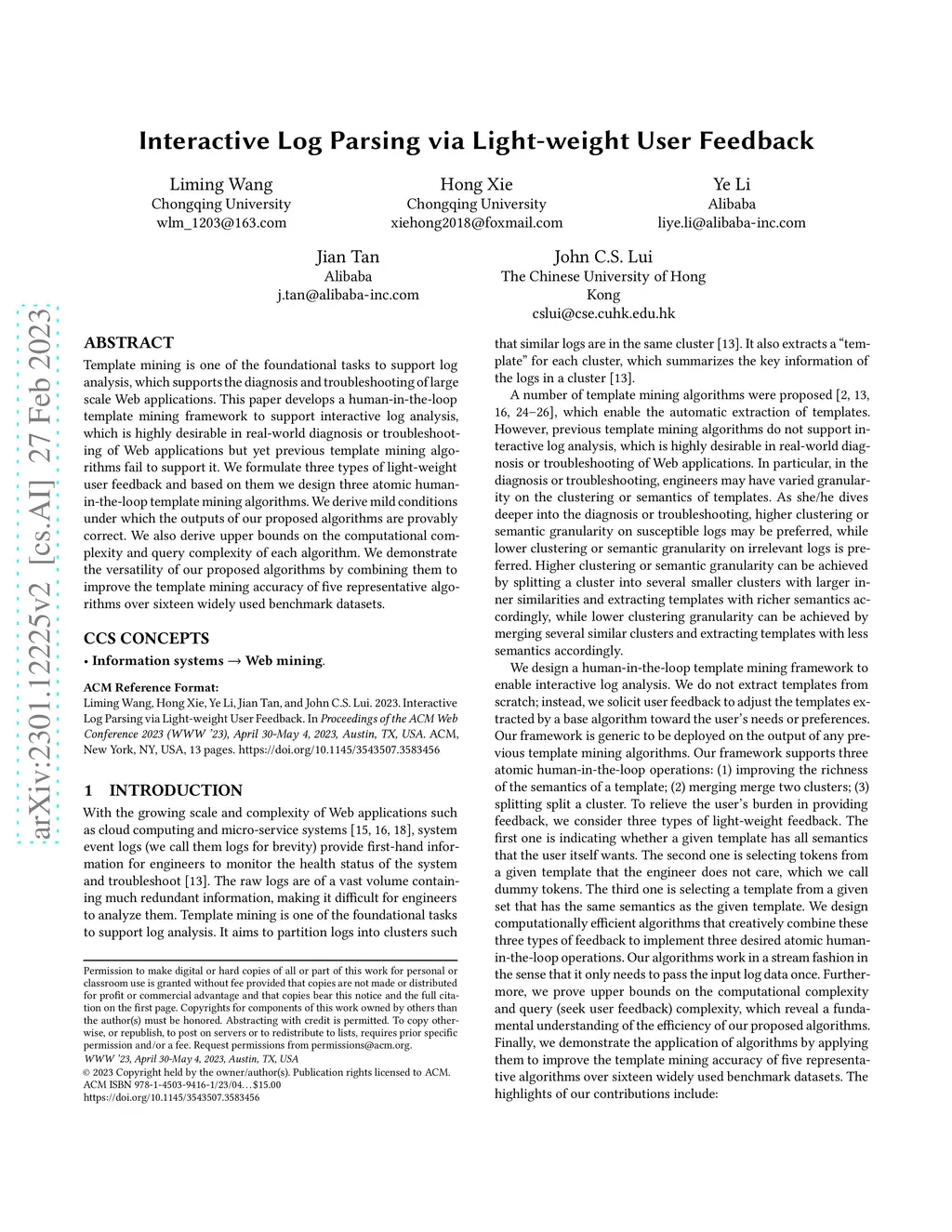 Interactive Log Parsing via Light-weight User Feedback