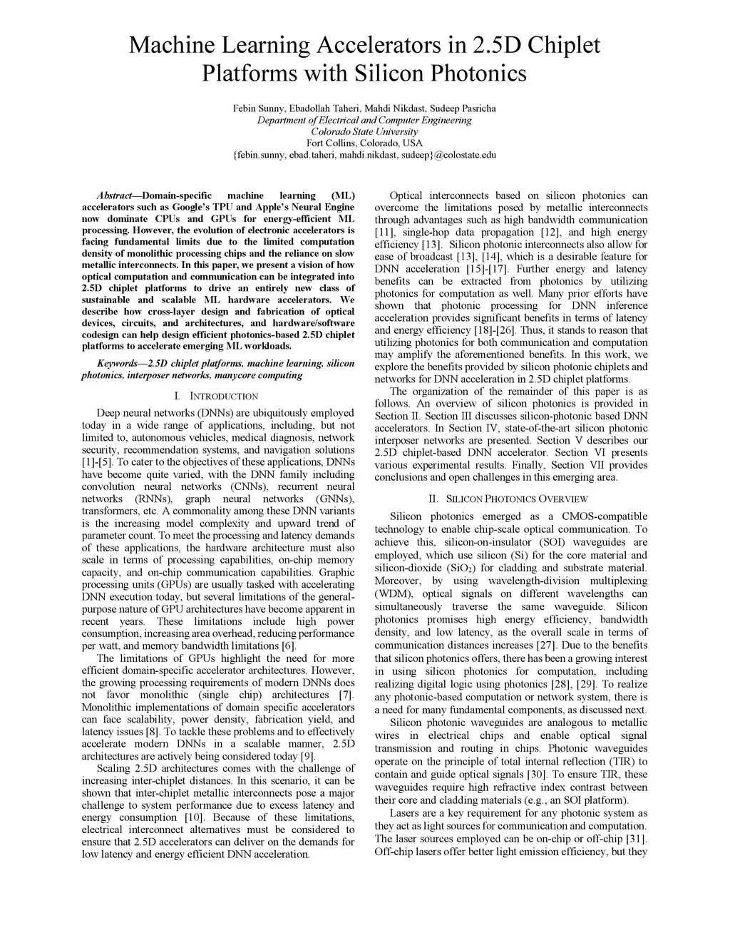 Domain-specific machine learning (ML) accelerators such as Google's TPU and Apple's Neural Engine now dominate CPUs and GPUs for energy-efficient ML processing. However, the evolution of electronic accelerators is facing fundamental limits due to the limited computation density of monolithic processing chips and the reliance on slow metallic interconnects. In this paper, we present a vision of how optical computation and communication can be integrated into 2.5D chiplet platforms to drive an entirely new class of sustainable and scalable ML hardware accelerators. We describe how cross-layer design and fabrication of optical devices, circuits, and architectures, and hardware/software codesign can help design efficient photonics-based 2.5D chiplet platforms to accelerate emerging ML workloads.