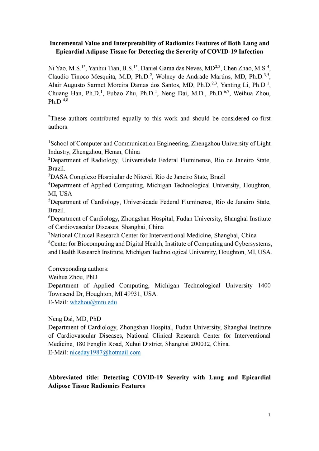 Lung and Epicardial Adipose Tissue for Detecting the Severity of COVID-19