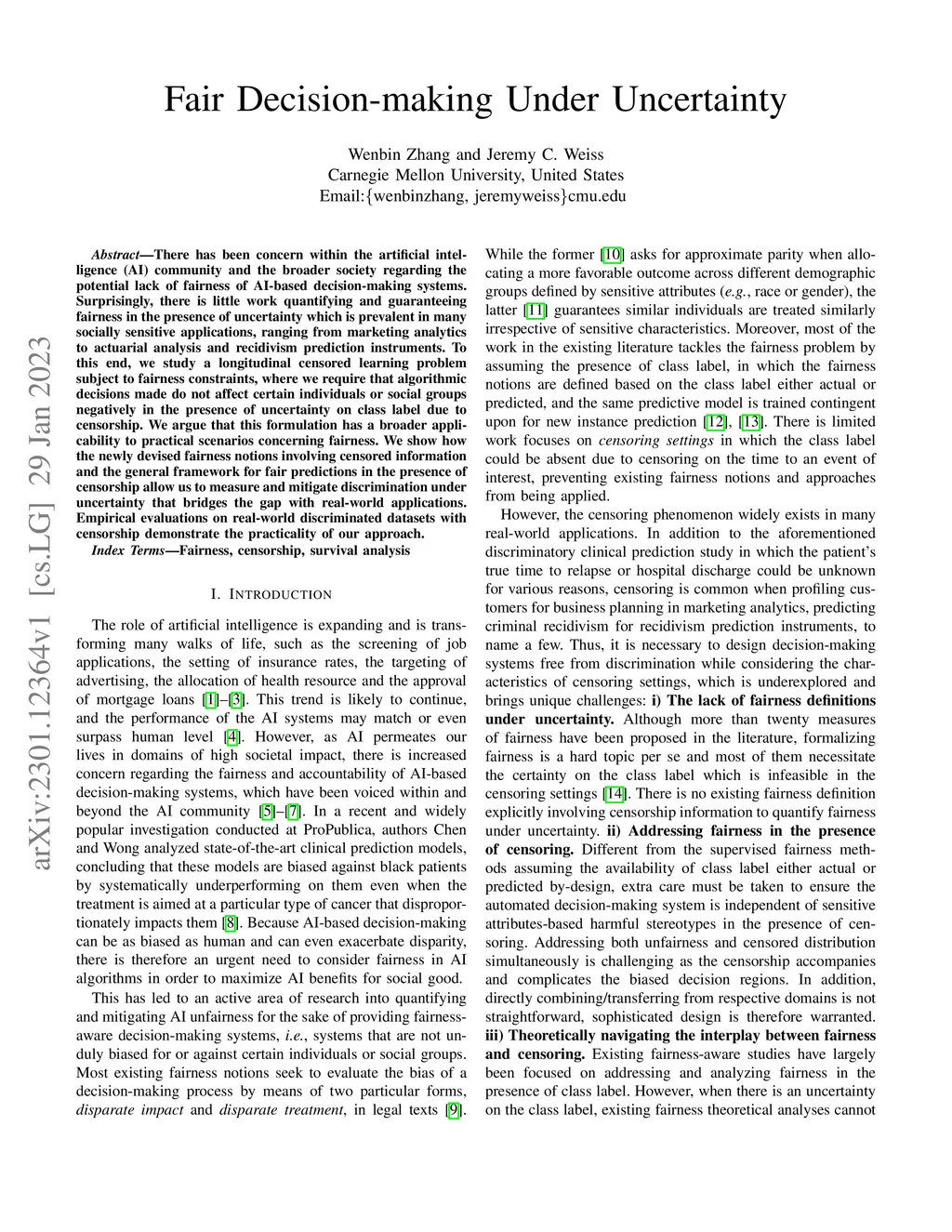 There has been concern within the artificial intelligence (AI) community and the broader society regarding the potential lack of fairness of AI-based decision-making systems. Surprisingly, there is little work quantifying and guaranteeing fairness in the presence of uncertainty which is prevalent in many socially sensitive applications, ranging from marketing analytics to actuarial analysis and recidivism prediction instruments. To this end, we study a longitudinal censored learning problem subject to fairness constraints, where we require that algorithmic decisions made do not affect certain individuals or social groups negatively in the presence of uncertainty on class label due to censorship. We argue that this formulation has a broader applicability to practical scenarios concerning fairness. We show how the newly devised fairness notions involving censored information and the general framework for fair predictions in the presence of censorship allow us to measure and mitigate discrimination under uncertainty that bridges the gap with real-world applications. Empirical evaluations on real-world discriminated datasets with censorship demonstrate the practicality of our approach.