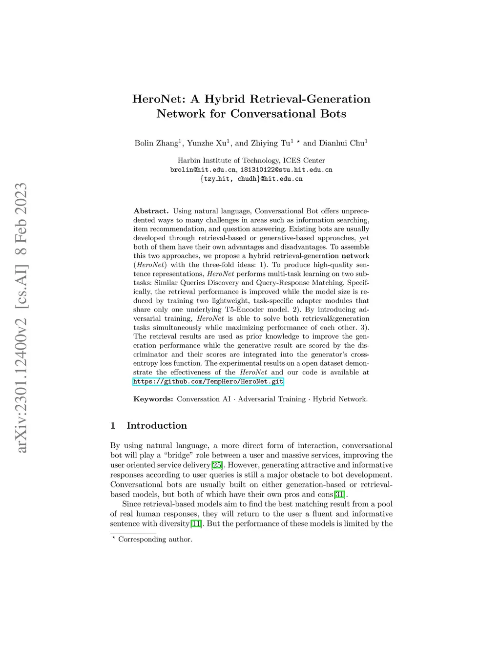 HeroNet: A Hybrid Retrieval-Generation Network for Conversational Bots