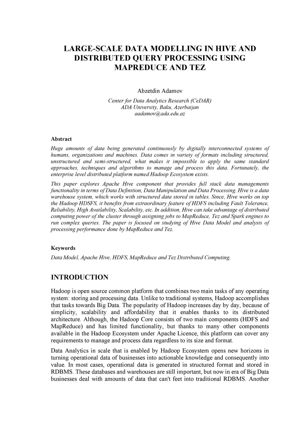 Large-scale Data Modelling in Hive and Distributed Query Processing