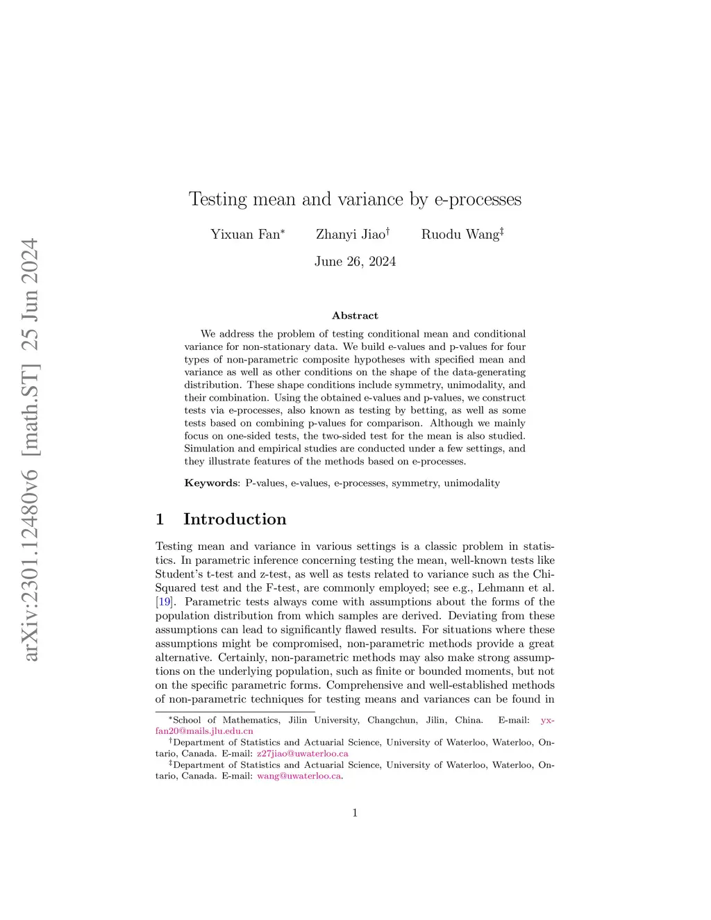 Testing mean and variance by e-processes