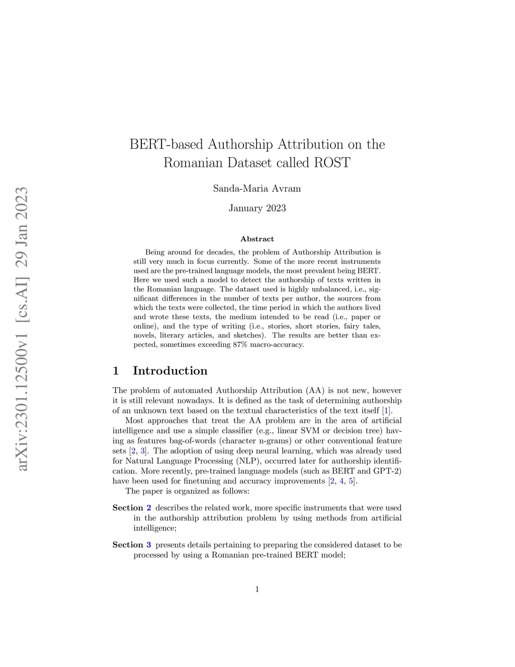 Being around for decades, the problem of Authorship Attribution is still very much in focus currently. Some of the more recent instruments used are the pre-trained language models, the most prevalent being BERT. Here we used such a model to detect the authorship of texts written in the Romanian language. The dataset used is highly unbalanced, i.e., significant differences in the number of texts per author, the sources from which the texts were collected, the time period in which the authors lived and wrote these texts, the medium intended to be read (i.e., paper or online), and the type of writing (i.e., stories, short stories, fairy tales, novels, literary articles, and sketches). The results are better than expected, sometimes exceeding 87\% macro-accuracy.