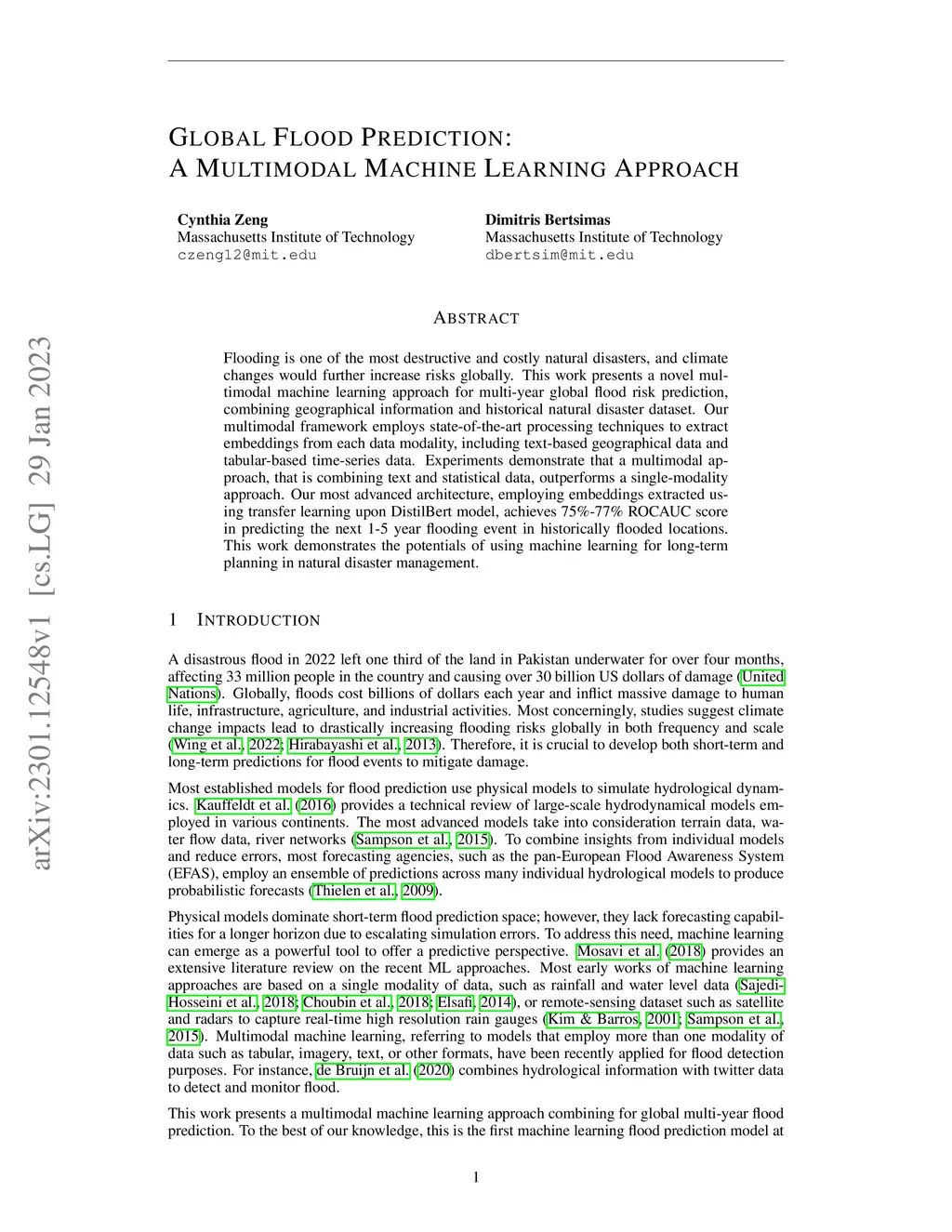 Global Flood Prediction: a Multimodal Machine Learning Approach