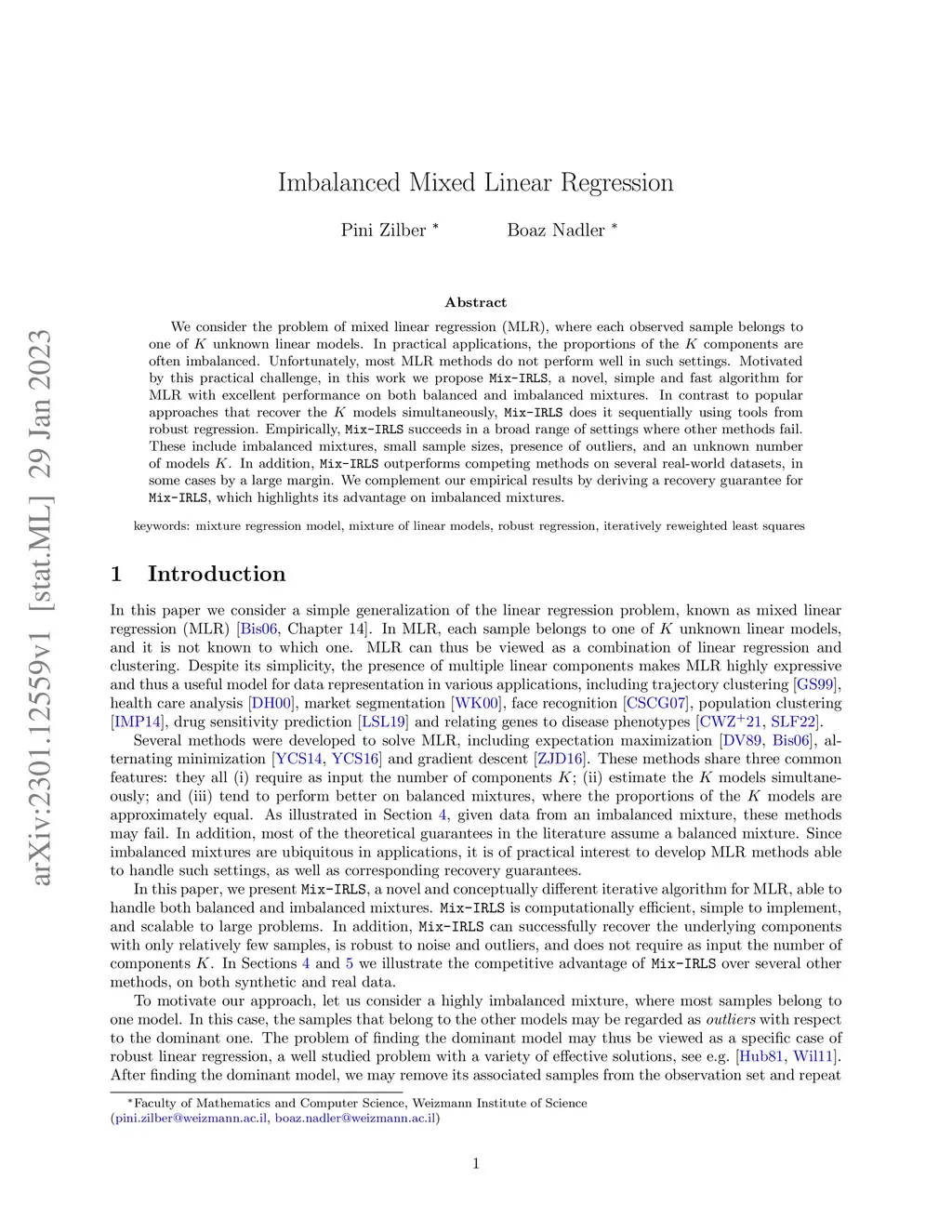 We consider the problem of mixed linear regression (MLR), where each observed sample belongs to one of unknown linear models. In practical applications, the proportions of the components are often imbalanced. Unfortunately, most MLR methods do not perform well in such settings. Motivated by this practical challenge, in this work we propose Mix-IRLS, a novel, simple and fast algorithm for MLR with excellent performance on both balanced and imbalanced mixtures. In contrast to popular approaches that recover the models simultaneously, Mix-IRLS does it sequentially using tools from robust regression. Empirically, Mix-IRLS succeeds in a broad range of settings where other methods fail. These include imbalanced mixtures, small sample sizes, presence of outliers, and an unknown number of models . In addition, Mix-IRLS outperforms competing methods on several real-world datasets, in some cases by a large margin. We complement our empirical results by deriving a recovery guarantee for Mix-IRLS, which highlights its advantage on imbalanced mixtures.