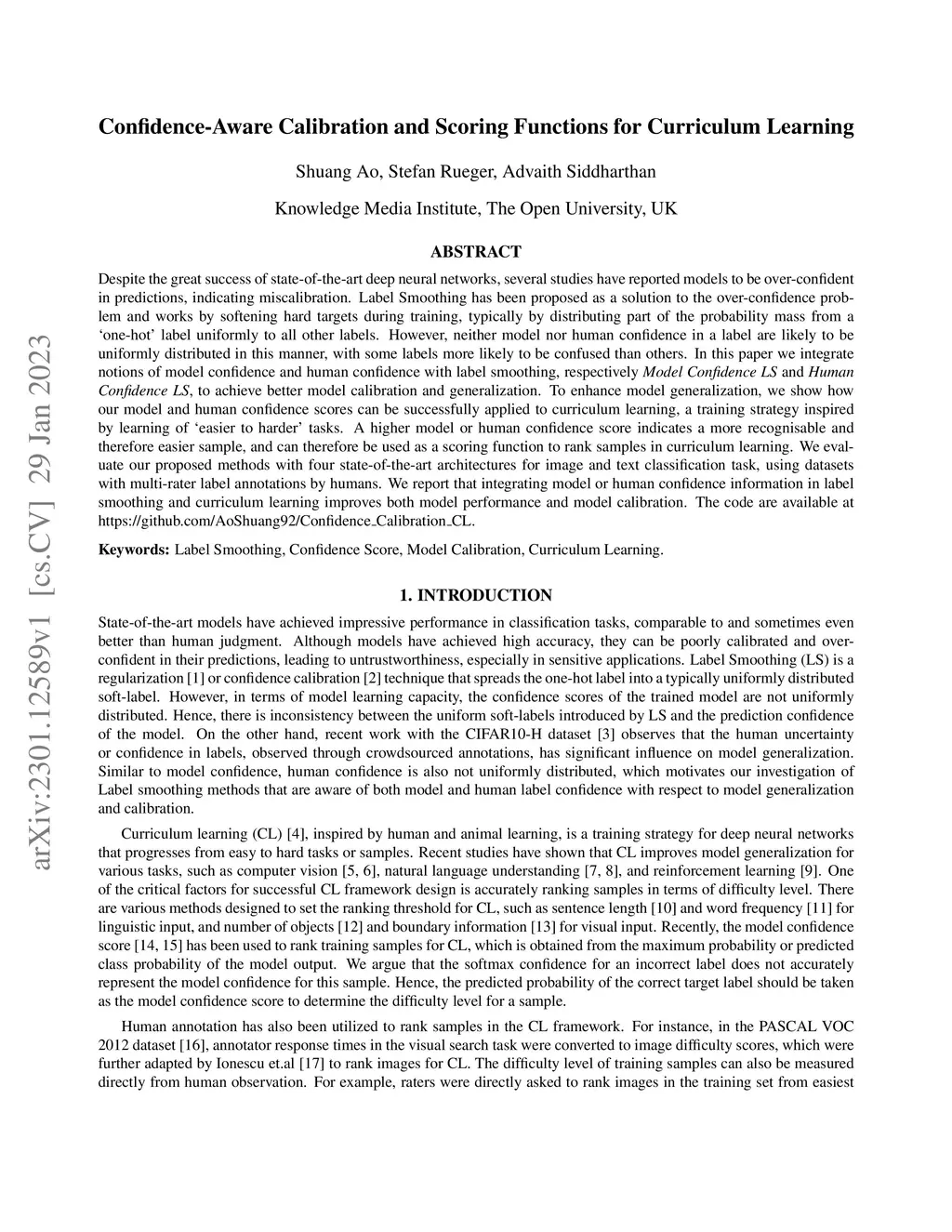 Despite the great success of state-of-the-art deep neural networks, several studies have reported models to be over-confident in predictions, indicating miscalibration. Label Smoothing has been proposed as a solution to the over-confidence problem and works by softening hard targets during training, typically by distributing part of the probability mass from a `one-hot' label uniformly to all other labels. However, neither model nor human confidence in a label are likely to be uniformly distributed in this manner, with some labels more likely to be confused than others. In this paper we integrate notions of model confidence and human confidence with label smoothing, respectively \textit{Model Confidence LS} and \textit{Human Confidence LS}, to achieve better model calibration and generalization. To enhance model generalization, we show how our model and human confidence scores can be successfully applied to curriculum learning, a training strategy inspired by learning of `easier to harder' tasks. A higher model or human confidence score indicates a more recognisable and therefore easier sample, and can therefore be used as a scoring function to rank samples in curriculum learning. We evaluate our proposed methods with four state-of-the-art architectures for image and text classification task, using datasets with multi-rater label annotations by humans. We report that integrating model or human confidence information in label smoothing and curriculum learning improves both model performance and model calibration. The code are available at \url{https://github.com/AoShuang92/Confidence_Calibration_CL}.