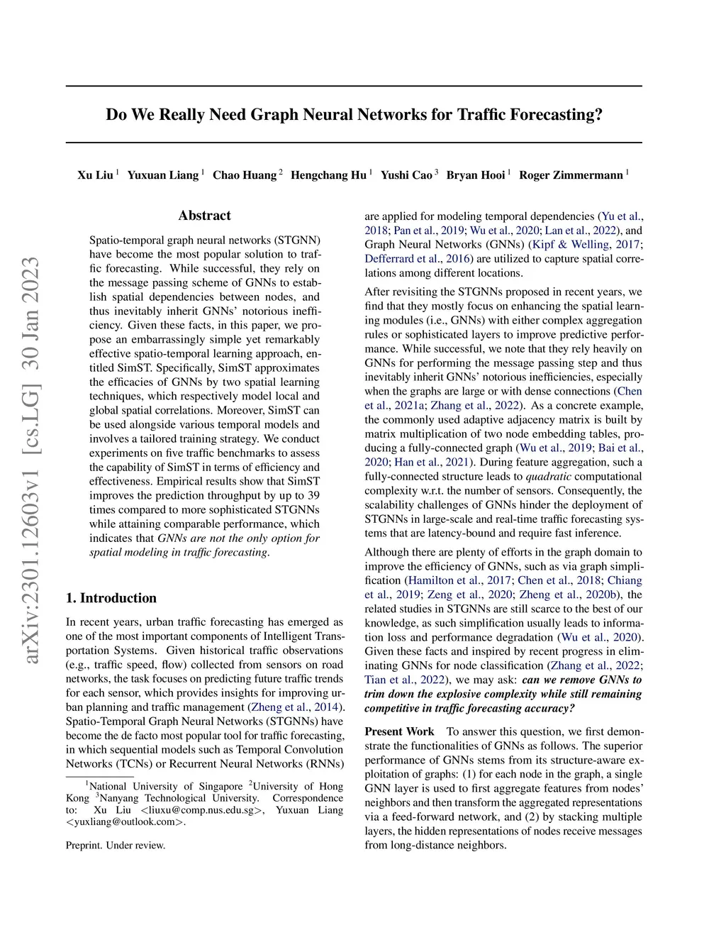 Spatio-temporal graph neural networks (STGNN) have become the most popular solution to traffic forecasting. While successful, they rely on the message passing scheme of GNNs to establish spatial dependencies between nodes, and thus inevitably inherit GNNs' notorious inefficiency. Given these facts, in this paper, we propose an embarrassingly simple yet remarkably effective spatio-temporal learning approach, entitled SimST. Specifically, SimST approximates the efficacies of GNNs by two spatial learning techniques, which respectively model local and global spatial correlations. Moreover, SimST can be used alongside various temporal models and involves a tailored training strategy. We conduct experiments on five traffic benchmarks to assess the capability of SimST in terms of efficiency and effectiveness. Empirical results show that SimST improves the prediction throughput by up to 39 times compared to more sophisticated STGNNs while attaining comparable performance, which indicates that GNNs are not the only option for spatial modeling in traffic forecasting.