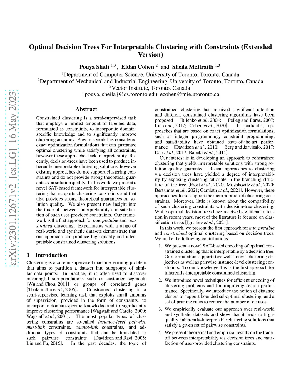 Optimal Decision Trees For Interpretable Clustering with Constraints