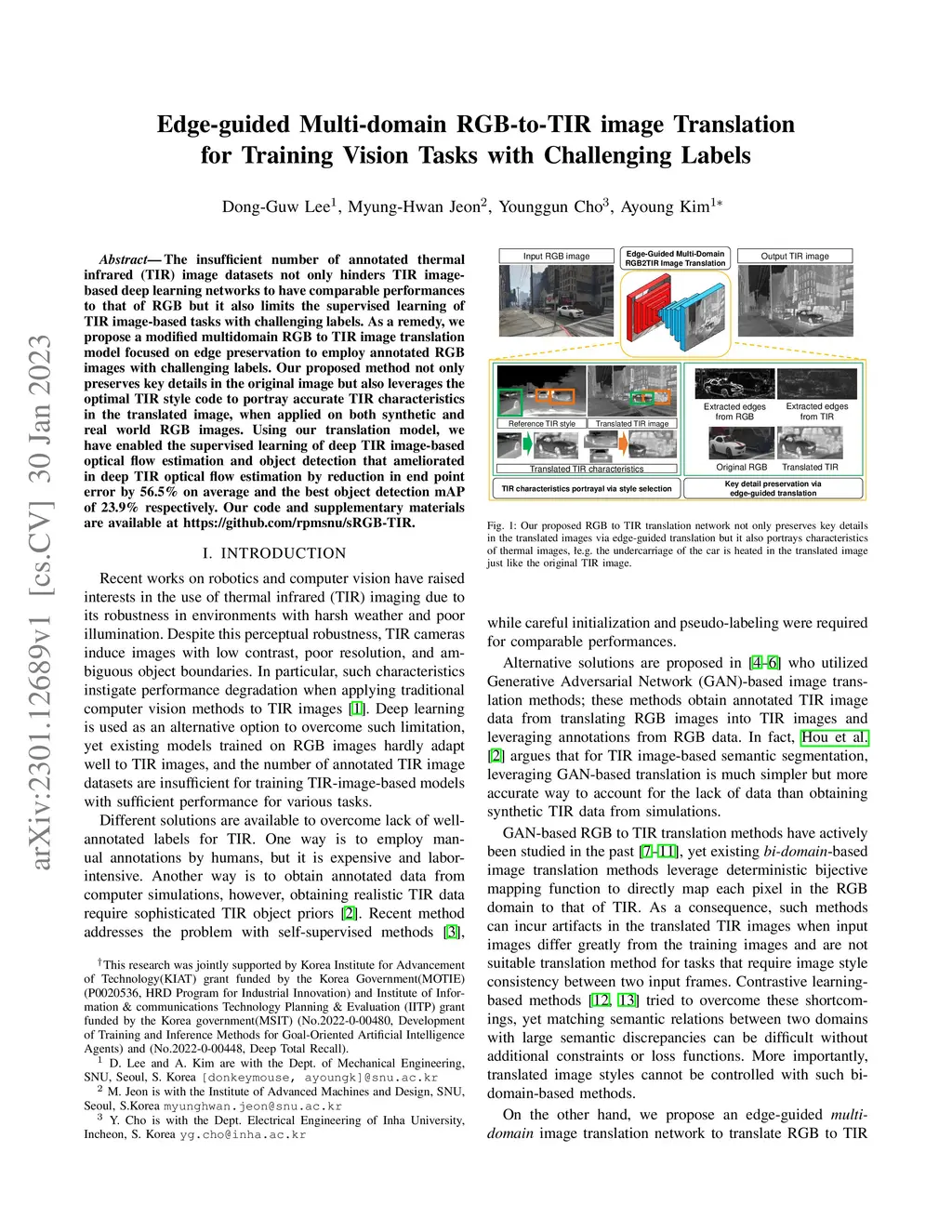 Edge-guided Multi-domain RGB-to-TIR image Translation for Training