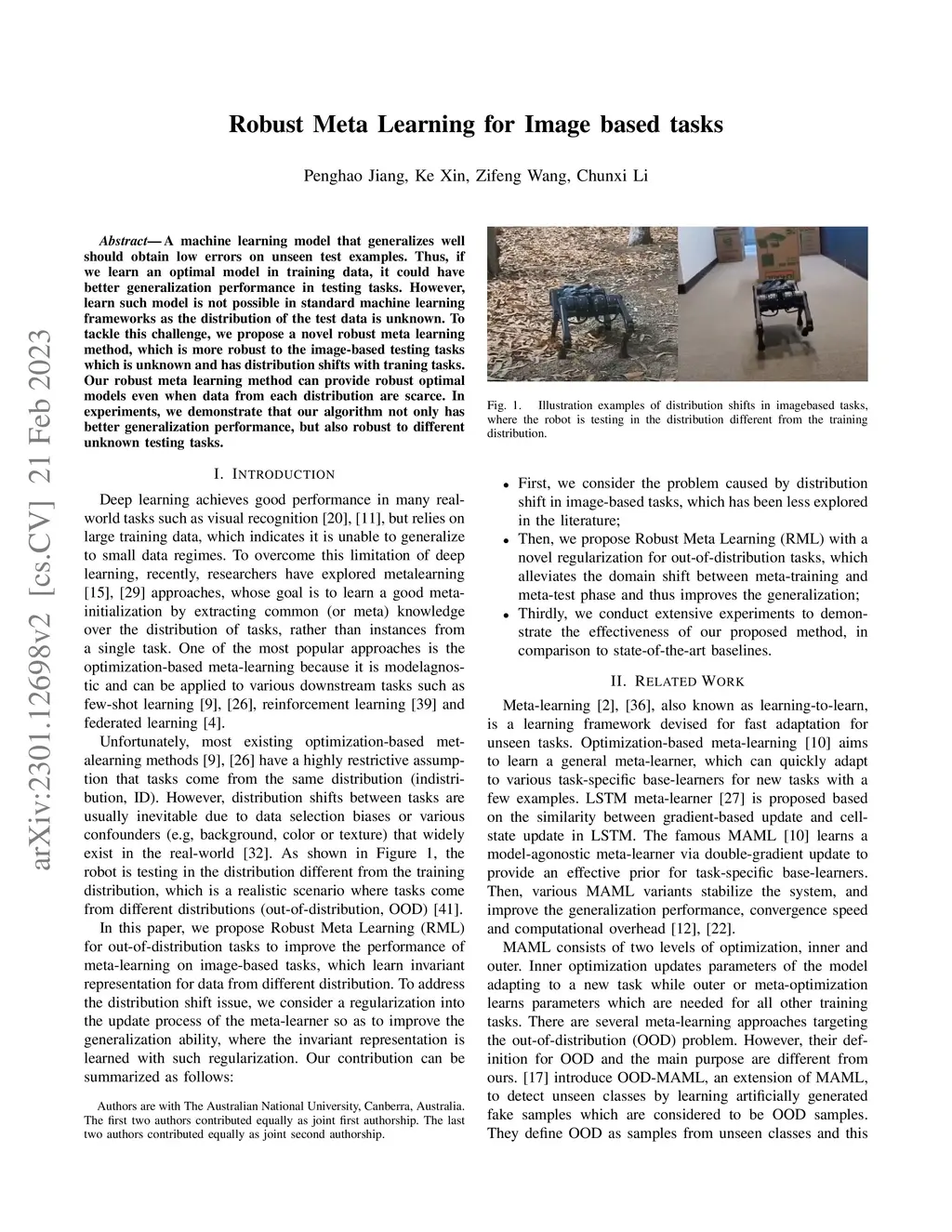 Robust Meta Learning for Image based tasks