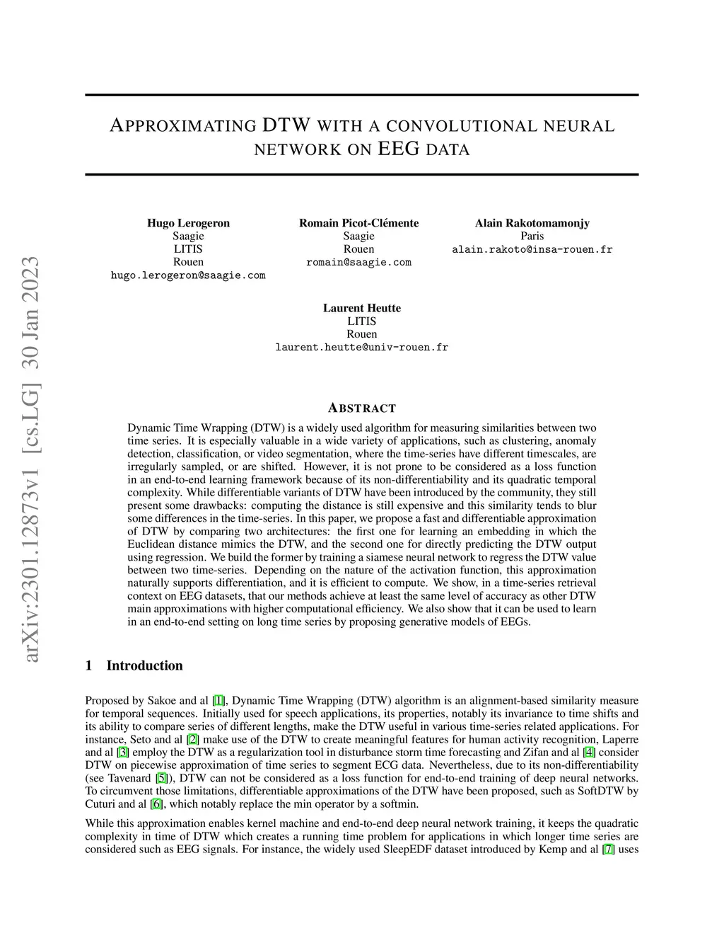 Approximating DTW with a convolutional neural network on EEG data