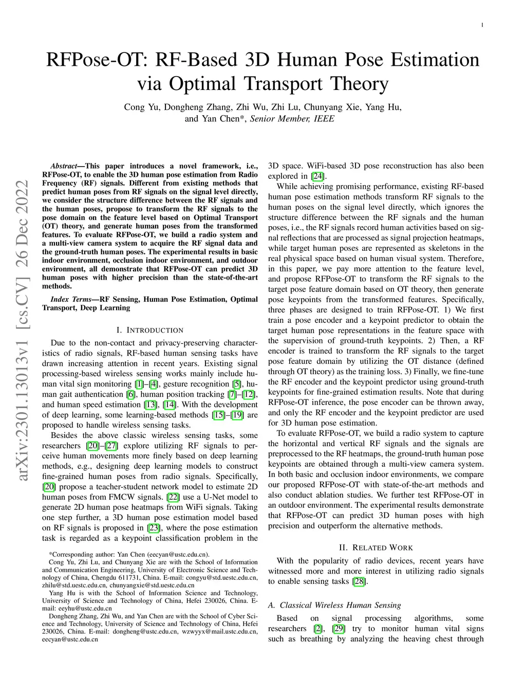 RFPose-OT: RF-Based 3D Human Pose Estimation via Optimal Transport