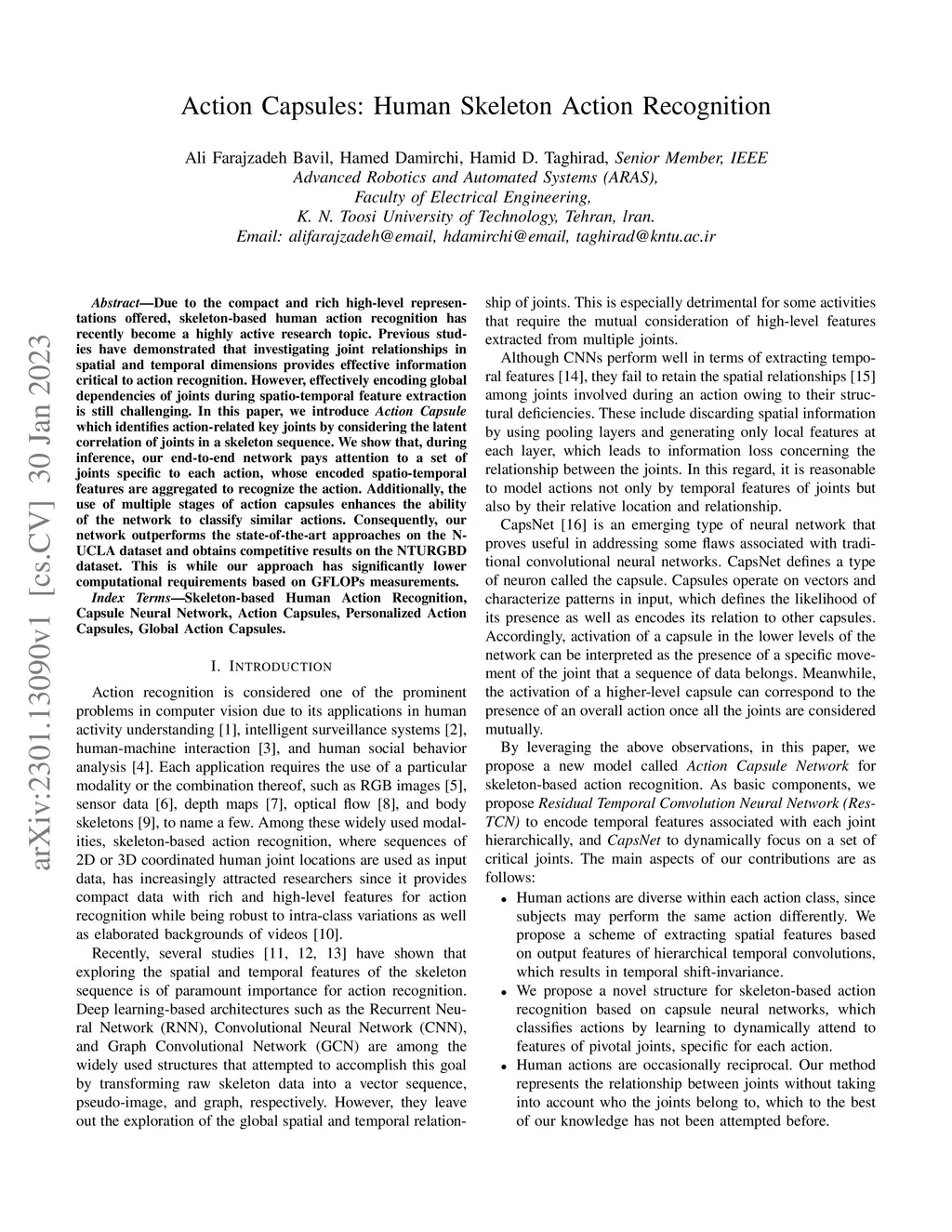 Action Capsules: Human Skeleton Action Recognition
