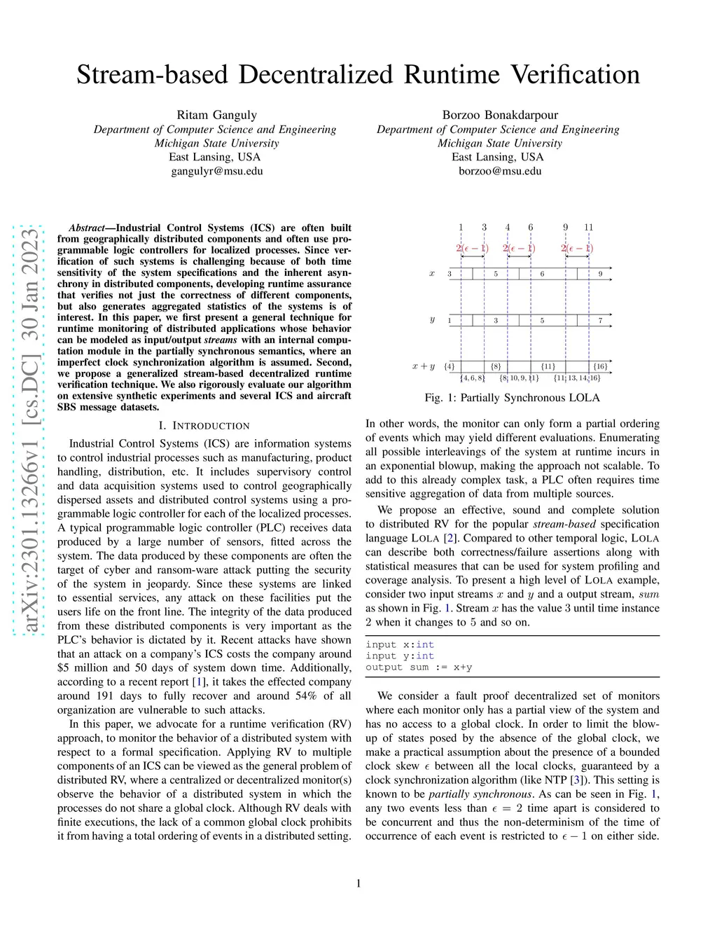 Industrial Control Systems (ICS) are often built from geographically distributed components and often use programmable logic controllers for localized processes. Since verification of such systems is challenging because of both time sensitivity of the system specifications and the inherent asynchrony in distributed components, developing runtime assurance that verifies not just the correctness of different components, but also generates aggregated statistics of the systems is of interest. In this paper, we first present a general technique for runtime monitoring of distributed applications whose behavior can be modeled as input/output {\em streams} with an internal computation module in the partially synchronous semantics, where an imperfect clock synchronization algorithm is assumed. Second, we propose a generalized stream-based decentralized runtime verification technique. We also rigorously evaluate our algorithm on extensive synthetic experiments and several ICS and aircraft SBS message datasets.