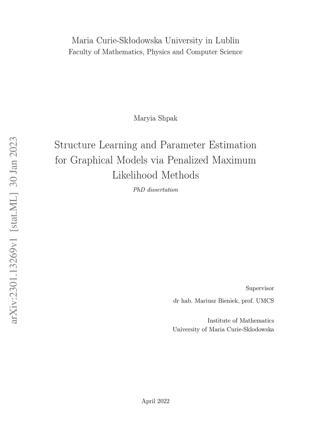 Structure Learning and Parameter Estimation for Graphical Models via