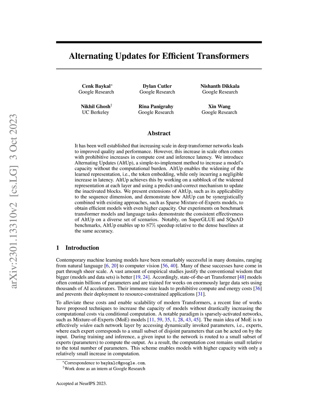 Alternating Updates for Efficient Transformers
