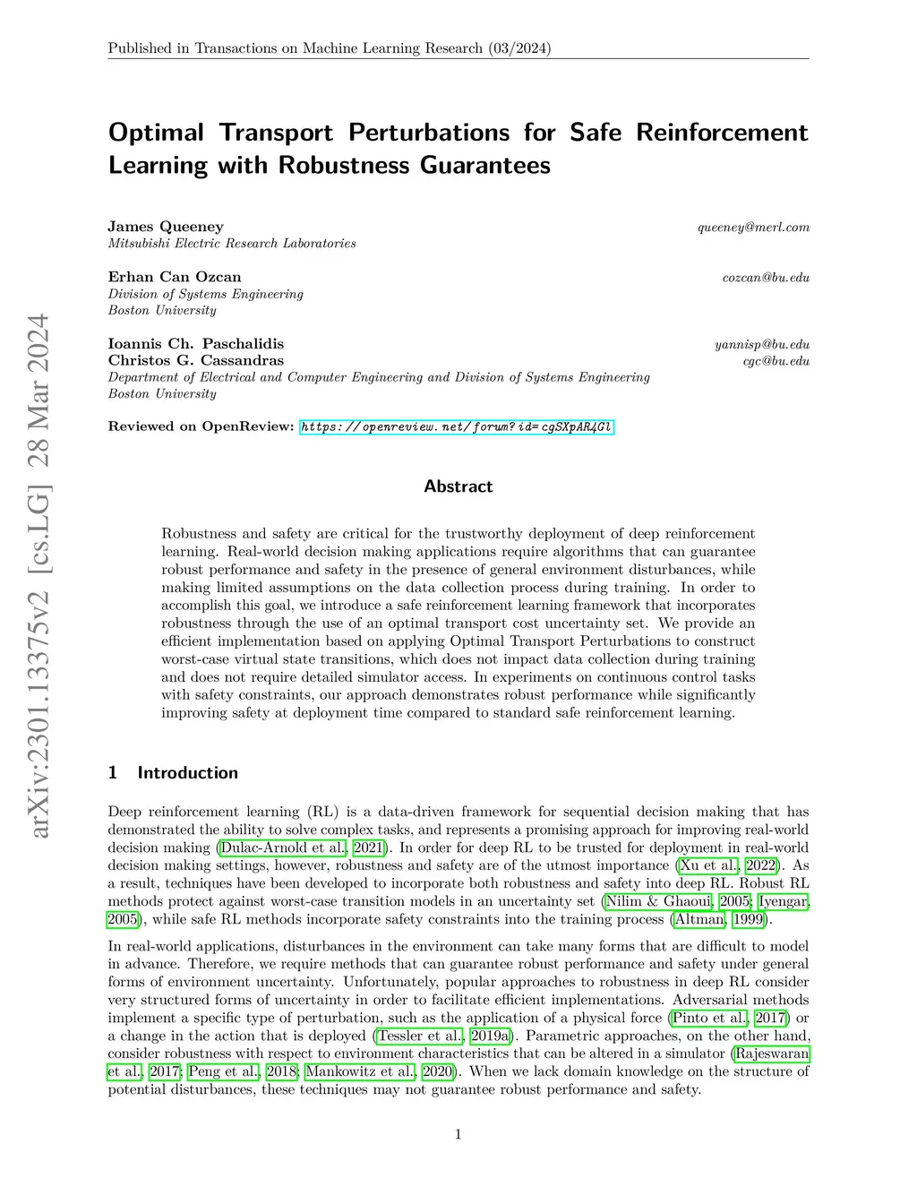 Optimal Transport Perturbations for Safe Reinforcement Learning with