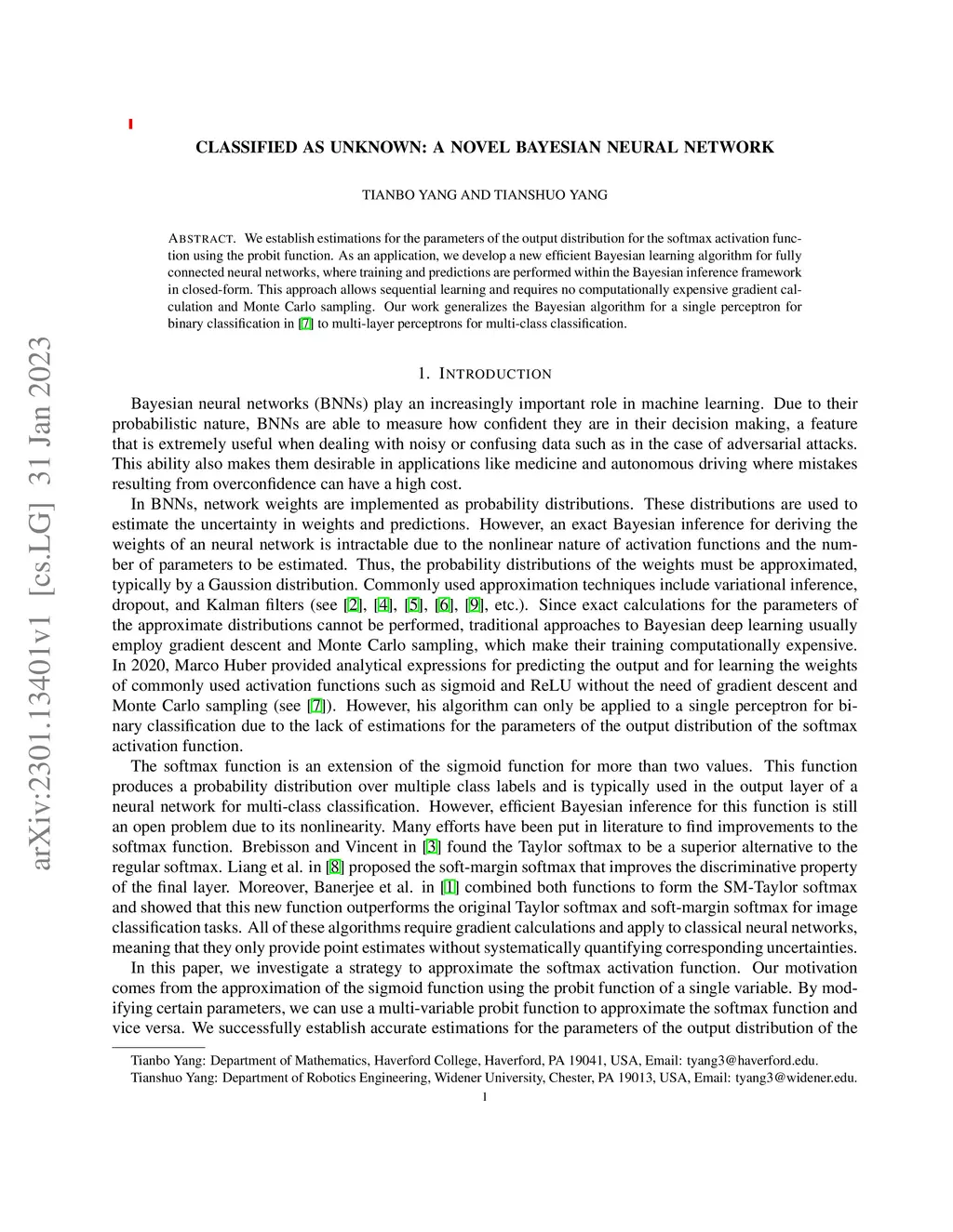 Classified as unknown: A novel Bayesian neural network