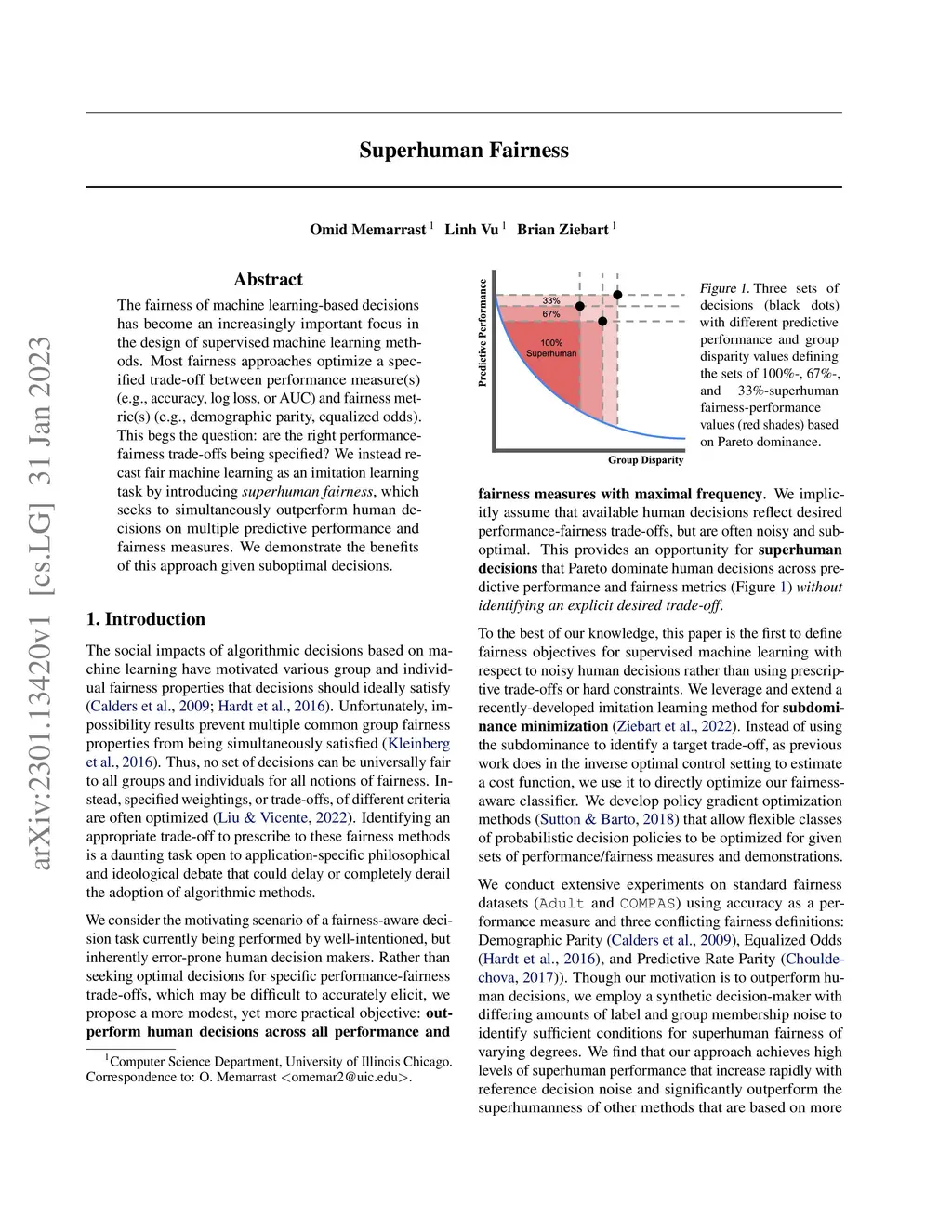 The fairness of machine learning-based decisions has become an increasingly important focus in the design of supervised machine learning methods. Most fairness approaches optimize a specified trade-off between performance measure(s) (e.g., accuracy, log loss, or AUC) and fairness metric(s) (e.g., demographic parity, equalized odds). This begs the question: are the right performance-fairness trade-offs being specified? We instead re-cast fair machine learning as an imitation learning task by introducing superhuman fairness, which seeks to simultaneously outperform human decisions on multiple predictive performance and fairness measures. We demonstrate the benefits of this approach given suboptimal decisions.