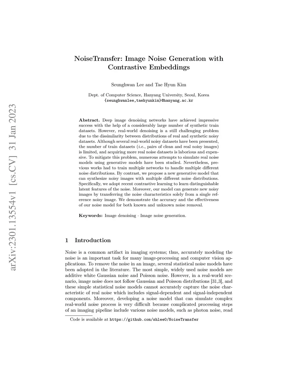 NoiseTransfer: Image Noise Generation with Contrastive Embeddings