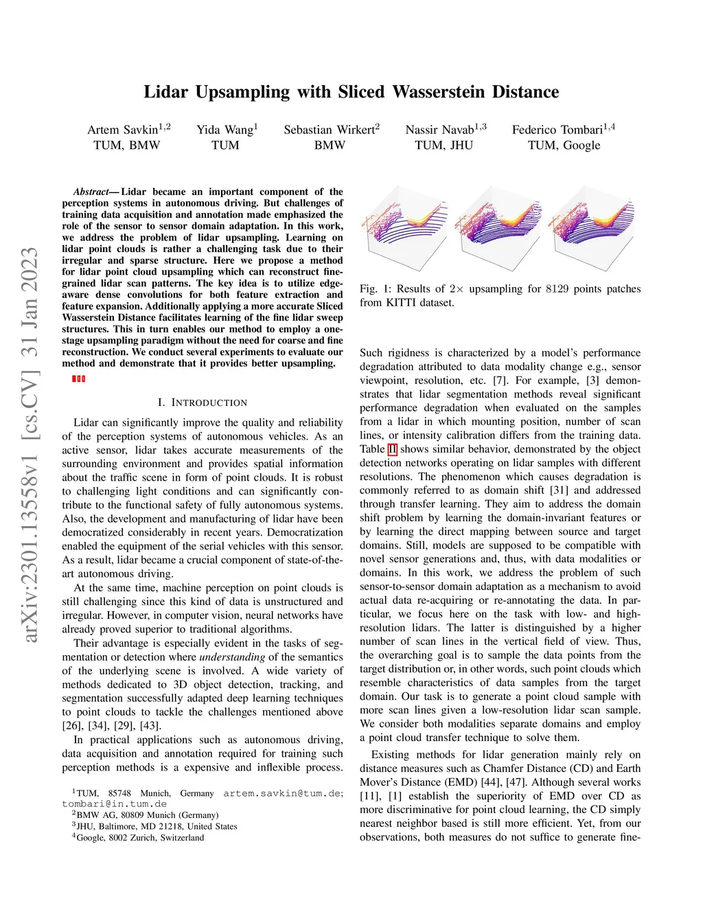 Lidar Upsampling with Sliced Wasserstein Distance
