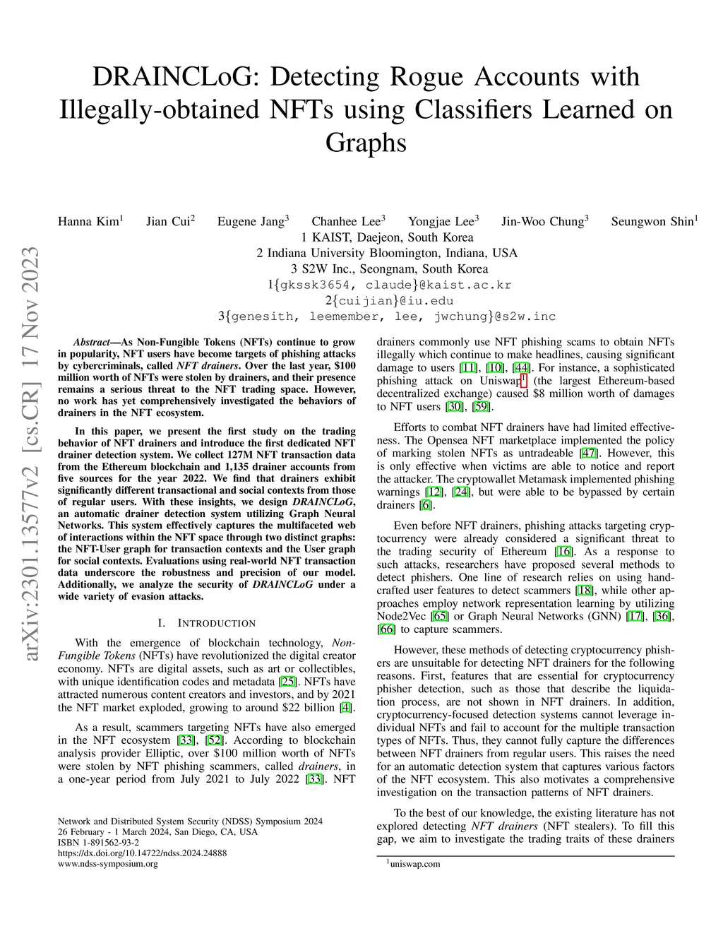 DRAINCLoG: Detecting Rogue Accounts with Illegally-obtained NFTs using