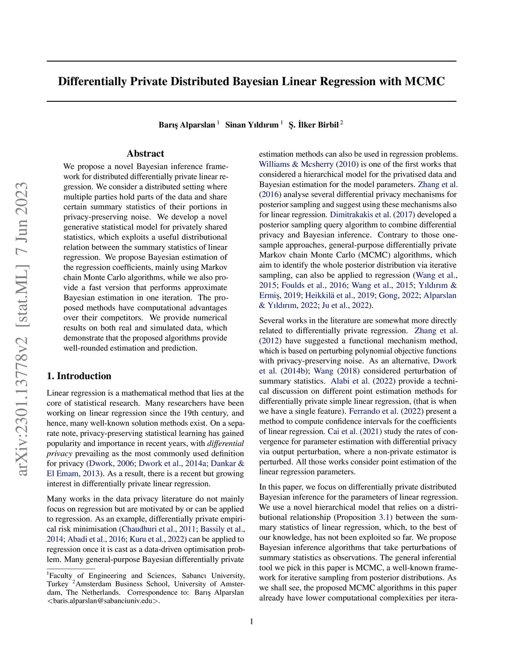 Differentially Private Distributed Bayesian Linear Regression with MCMC