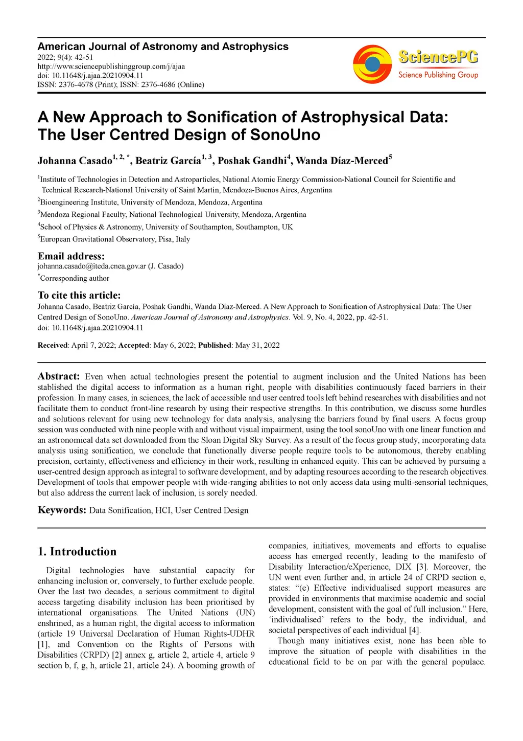 Even when actual technologies present the potential to augment inclusion and the United Nations has been stablished the digital access to information as a human right, people with disabilities continuously faced barriers in their profession. In many cases, in sciences, the lack of accessible and user centred tools left behind researches with disabilities and not facilitate them to conduct front-line research by using their respective strengths. In this contribution, we discuss some hurdles and solutions relevant for using new technology for data analysis, analysing the barriers found by final users. A focus group session was conducted with nine people with and without visual impairment, using the tool sonoUno with one linear function and an astronomical data set downloaded from the Sloan Digital Sky Survey. As a result of the focus group study, incorporating data analysis using sonification, we conclude that functionally diverse people require tools to be autonomous, thereby enabling precision, certainty, effectiveness and efficiency in their work, resulting in enhanced equity. This can be achieved by pursuing a user-centred design approach as integral to software development, and by adapting resources according to the research objectives. Development of tools that empower people with wide-ranging abilities to not only access data using multi-sensorial techniques, but also address the current lack of inclusion, is sorely needed.
