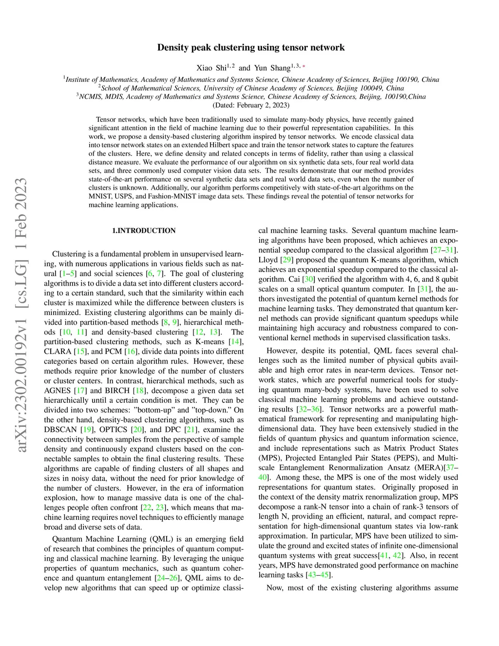 Tensor networks, which have been traditionally used to simulate many-body physics, have recently gained significant attention in the field of machine learning due to their powerful representation capabilities. In this work, we propose a density-based clustering algorithm inspired by tensor networks. We encode classical data into tensor network states on an extended Hilbert space and train the tensor network states to capture the features of the clusters. Here, we define density and related concepts in terms of fidelity, rather than using a classical distance measure. We evaluate the performance of our algorithm on six synthetic data sets, four real world data sets, and three commonly used computer vision data sets. The results demonstrate that our method provides state-of-the-art performance on several synthetic data sets and real world data sets, even when the number of clusters is unknown. Additionally, our algorithm performs competitively with state-of-the-art algorithms on the MNIST, USPS, and Fashion-MNIST image data sets. These findings reveal the great potential of tensor networks for machine learning applications.