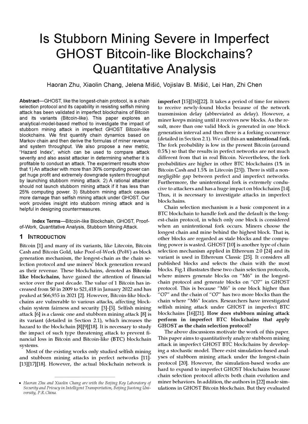 GHOST, like the longest-chain protocol, is a chain selection protocol and its capability in resisting selfish mining attack has been validated in imperfect blockchains of Bitcoin and its variants (Bitcoin-like). This paper explores an analytical-model-based method to investigate the impact of stubborn mining attack in imperfect GHOST Bitcoin-like blockchains. We first quantify chain dynamics based on Markov chain and then derive the formulas of miner revenue and system throughput. We also propose a new metric, "Hazard Index", which can be used to compare attack severity and also assist attacker in determining whether it is profitable to conduct an attack. The experiment results show that 1) An attacker with more than 30% computing power can get huge profit and extremely downgrade system throughput by launching stubborn mining attack. 2) A rational attacker should not launch stubborn mining attack if it has less than 25% computing power. 3) Stubborn mining attack causes more damage than selfish mining attack under GHOST. Our work provides insight into stubborn mining attack and is helpful in designing countermeasures.