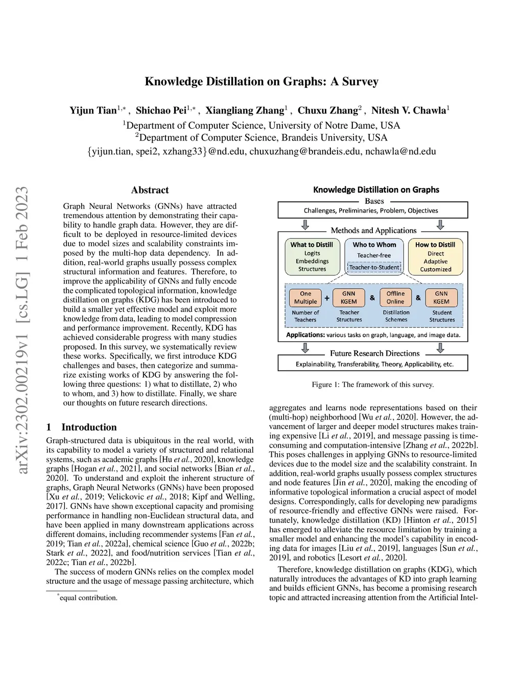 Graph Neural Networks (GNNs) have attracted tremendous attention by demonstrating their capability to handle graph data. However, they are difficult to be deployed in resource-limited devices due to model sizes and scalability constraints imposed by the multi-hop data dependency. In addition, real-world graphs usually possess complex structural information and features. Therefore, to improve the applicability of GNNs and fully encode the complicated topological information, knowledge distillation on graphs (KDG) has been introduced to build a smaller yet effective model and exploit more knowledge from data, leading to model compression and performance improvement. Recently, KDG has achieved considerable progress with many studies proposed. In this survey, we systematically review these works. Specifically, we first introduce KDG challenges and bases, then categorize and summarize existing works of KDG by answering the following three questions: 1) what to distillate, 2) who to whom, and 3) how to distillate. Finally, we share our thoughts on future research directions.