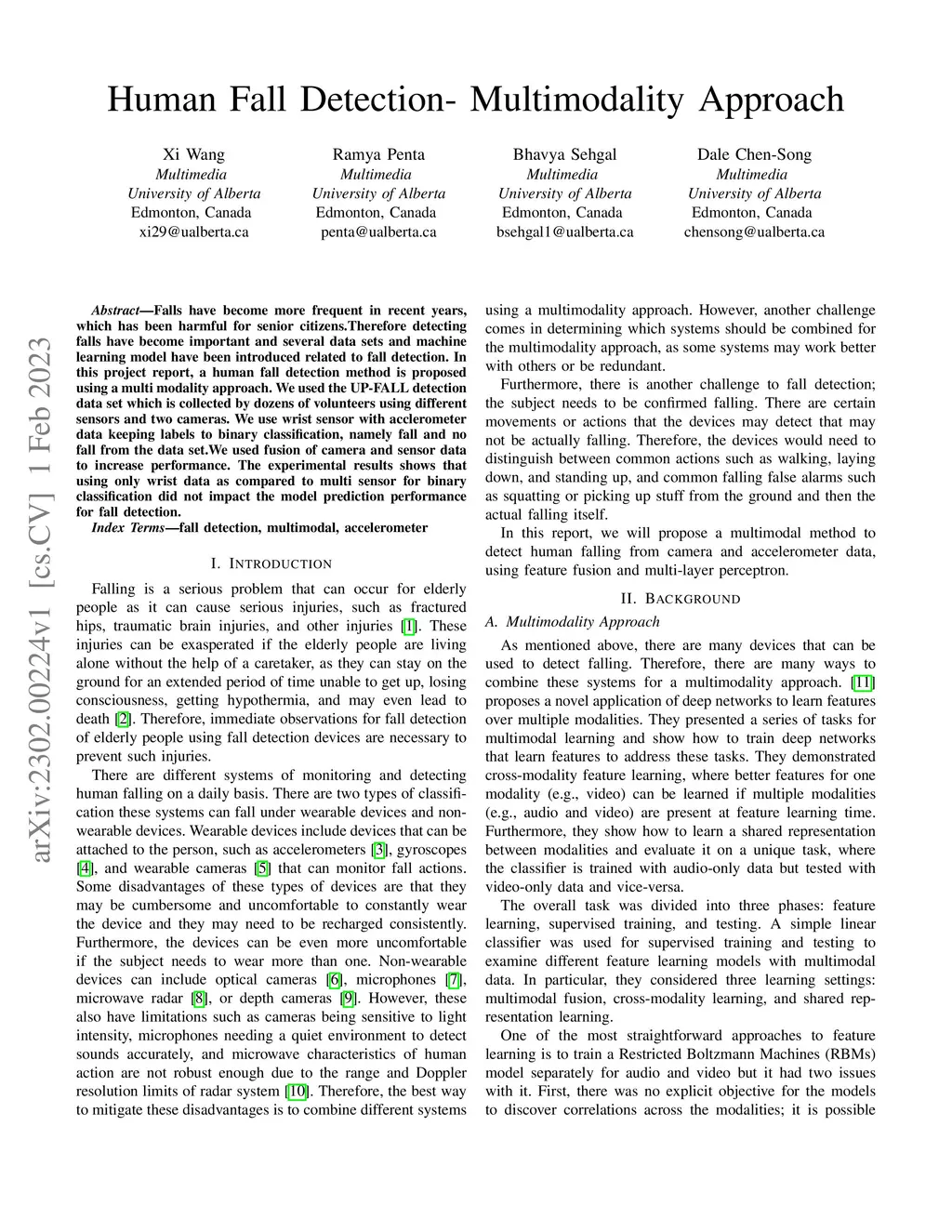 Human Fall Detection- Multimodality Approach