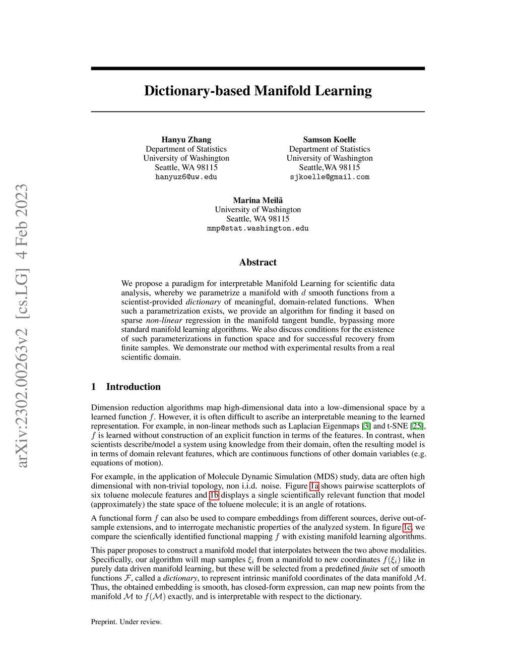 Dictionary-based Manifold Learning