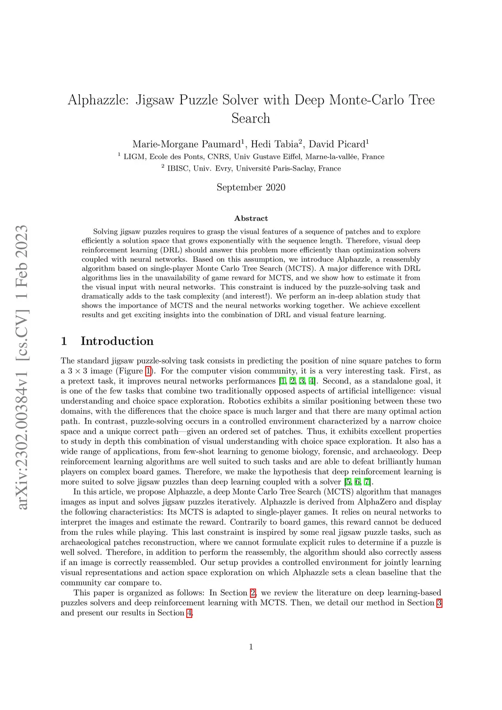 Alphazzle: Jigsaw Puzzle Solver with Deep Monte-Carlo Tree Search