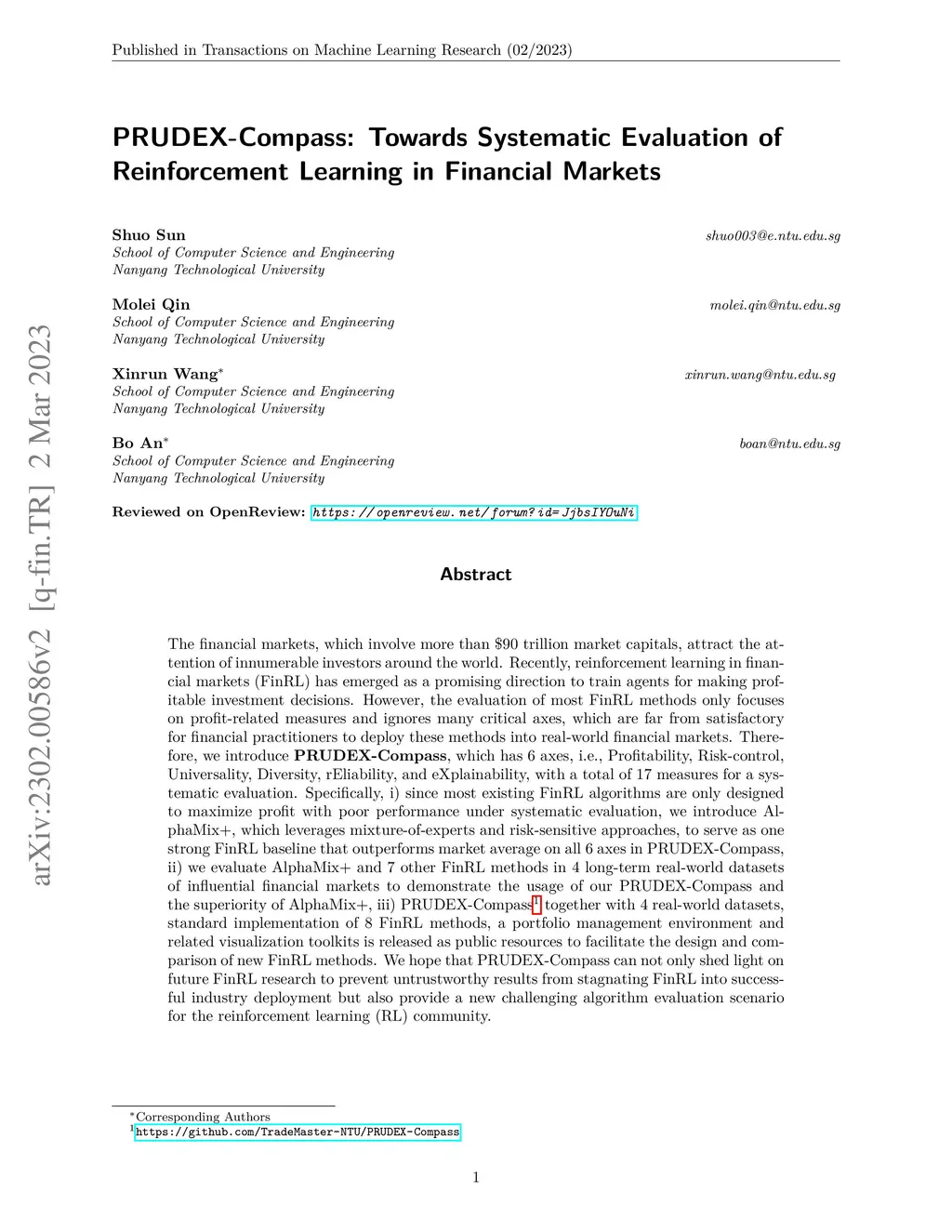 The financial markets, which involve more than $90 trillion market capitals, attract the attention of innumerable investors around the world. Recently, reinforcement learning in financial markets (FinRL) has emerged as a promising direction to train agents for making profitable investment decisions. However, the evaluation of most FinRL methods only focuses on profit-related measures and ignores many critical axes, which are far from satisfactory for financial practitioners to deploy these methods into real-world financial markets. Therefore, we introduce PRUDEX-Compass, which has 6 axes, i.e., Profitability, Risk-control, Universality, Diversity, rEliability, and eXplainability, with a total of 17 measures for a systematic evaluation. Specifically, i) we propose AlphaMix+ as a strong FinRL baseline, which leverages mixture-of-experts (MoE) and risk-sensitive approaches to make diversified risk-aware investment decisions, ii) we evaluate 8 FinRL methods in 4 long-term real-world datasets of influential financial markets to demonstrate the usage of our PRUDEX-Compass, iii) PRUDEX-Compass together with 4 real-world datasets, standard implementation of 8 FinRL methods and a portfolio management environment is released as public resources to facilitate the design and comparison of new FinRL methods. We hope that PRUDEX-Compass can not only shed light on future FinRL research to prevent untrustworthy results from stagnating FinRL into successful industry deployment but also provide a new challenging algorithm evaluation scenario for the reinforcement learning (RL) community.