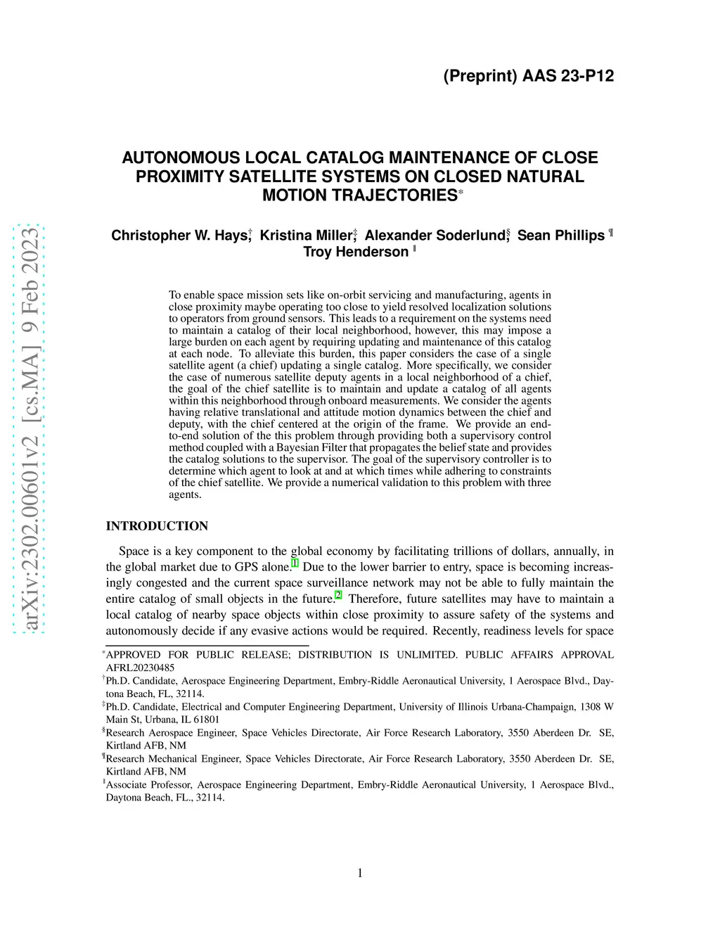 To enable space mission sets like on-orbit servicing and manufacturing, agents in close proximity maybe operating too close to yield resolved localization solutions to operators from ground sensors. This leads to a requirement on the systems need to maintain a catalog of their local neighborhood, however, this may impose a large burden on each agent by requiring updating and maintenance of this catalog at each node. To alleviate this burden, this paper considers the case of a single satellite agent (a chief) updating a single catalog. More specifically, we consider the case of numerous satellite deputy agents in a local neighborhood of a chief, the goal of the chief satellite is to maintain and update a catalog of all agents within this neighborhood through onboard measurements. We consider the agents having relative translational and attitude motion dynamics between the chief and deputy, with the chief centered at the origin of the frame. We provide an end-to-end solution of the this problem through providing both a supervisory control method coupled with a Bayesian Filter that propagates the belief state and provides the catalog solutions to the supervisor. The goal of the supervisory controller is to determine which agent to look at and at which times while adhering to constraints of the chief satellite. We provide a numerical validation to this problem with three agents.