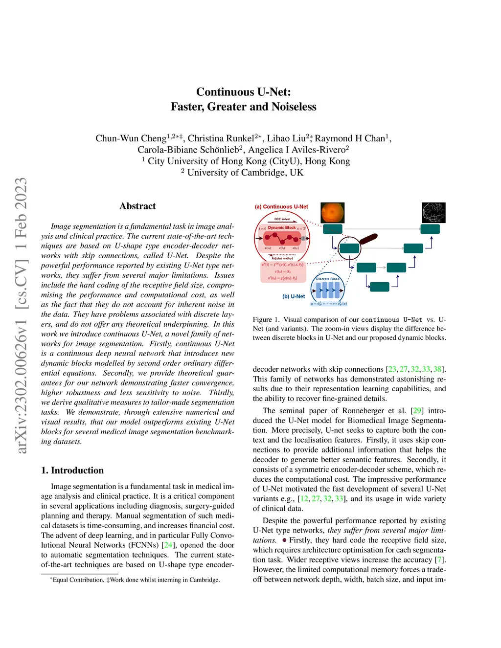 Continuous U-Net: Faster, Greater and Noiseless