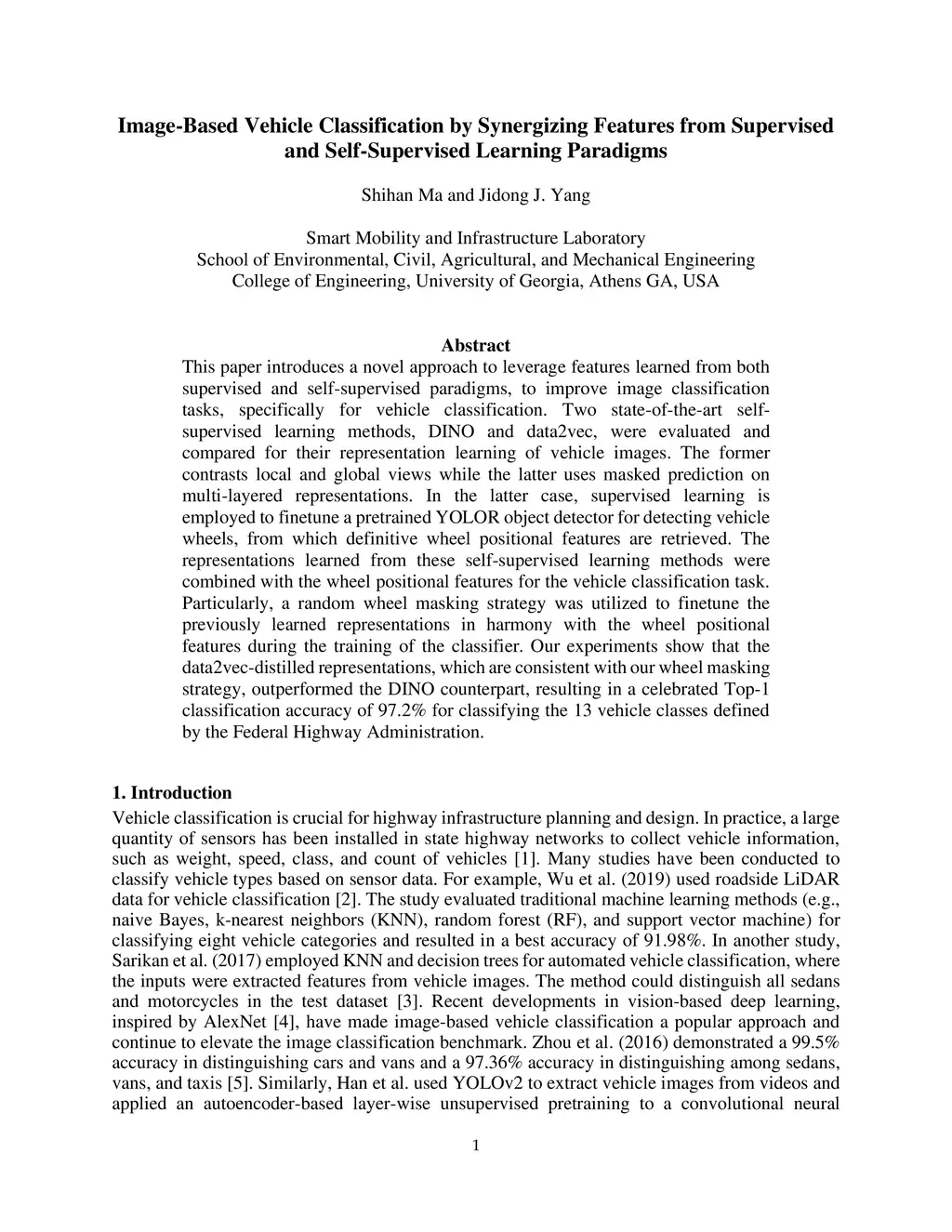 This paper introduces a novel approach to leverage features learned from both supervised and self-supervised paradigms, to improve image classification tasks, specifically for vehicle classification. Two state-of-the-art self-supervised learning methods, DINO and data2vec, were evaluated and compared for their representation learning of vehicle images. The former contrasts local and global views while the latter uses masked prediction on multi-layered representations. In the latter case, supervised learning is employed to finetune a pretrained YOLOR object detector for detecting vehicle wheels, from which definitive wheel positional features are retrieved. The representations learned from these self-supervised learning methods were combined with the wheel positional features for the vehicle classification task. Particularly, a random wheel masking strategy was utilized to finetune the previously learned representations in harmony with the wheel positional features during the training of the classifier. Our experiments show that the data2vec-distilled representations, which are consistent with our wheel masking strategy, outperformed the DINO counterpart, resulting in a celebrated Top-1 classification accuracy of 97.2% for classifying the 13 vehicle classes defined by the Federal Highway Administration.
